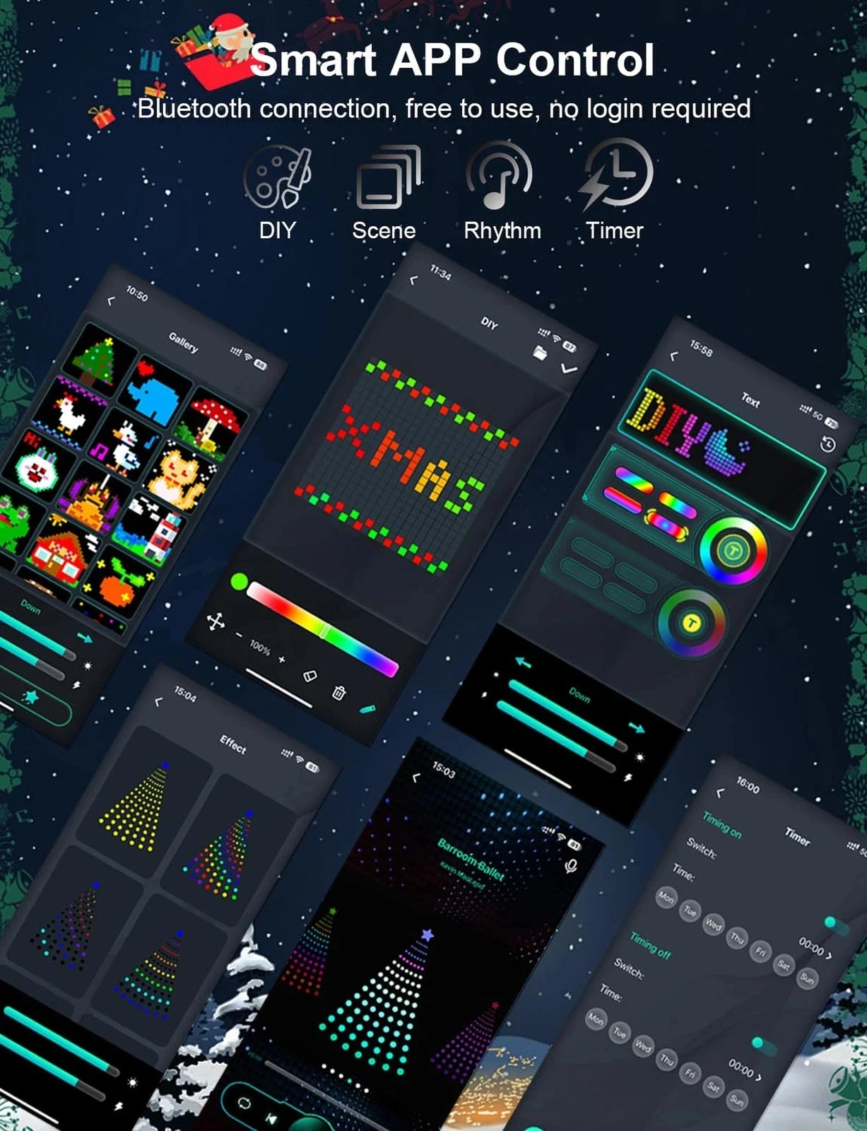 2.Experience a new level of holiday magic with our Smart LED Christmas Tree lights. Connect effortlessly via Bluetooth to the "I deal LED" app, available for both iOS and Android devices. Take complete control of brightness, speeds, color modes, scenes, and timer settings with ease