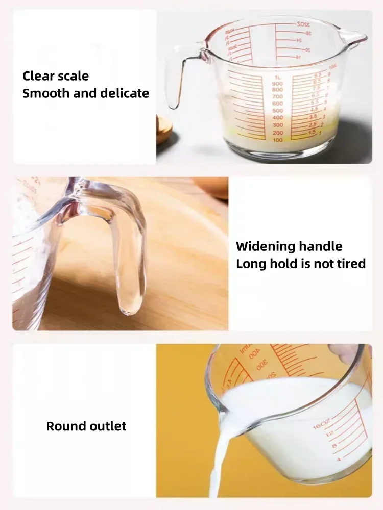 1000ML/500ML Measuring Cups High Temperature Resistant Baking Glass Measuring Cup with Scale Home Kitchen Baking Tools