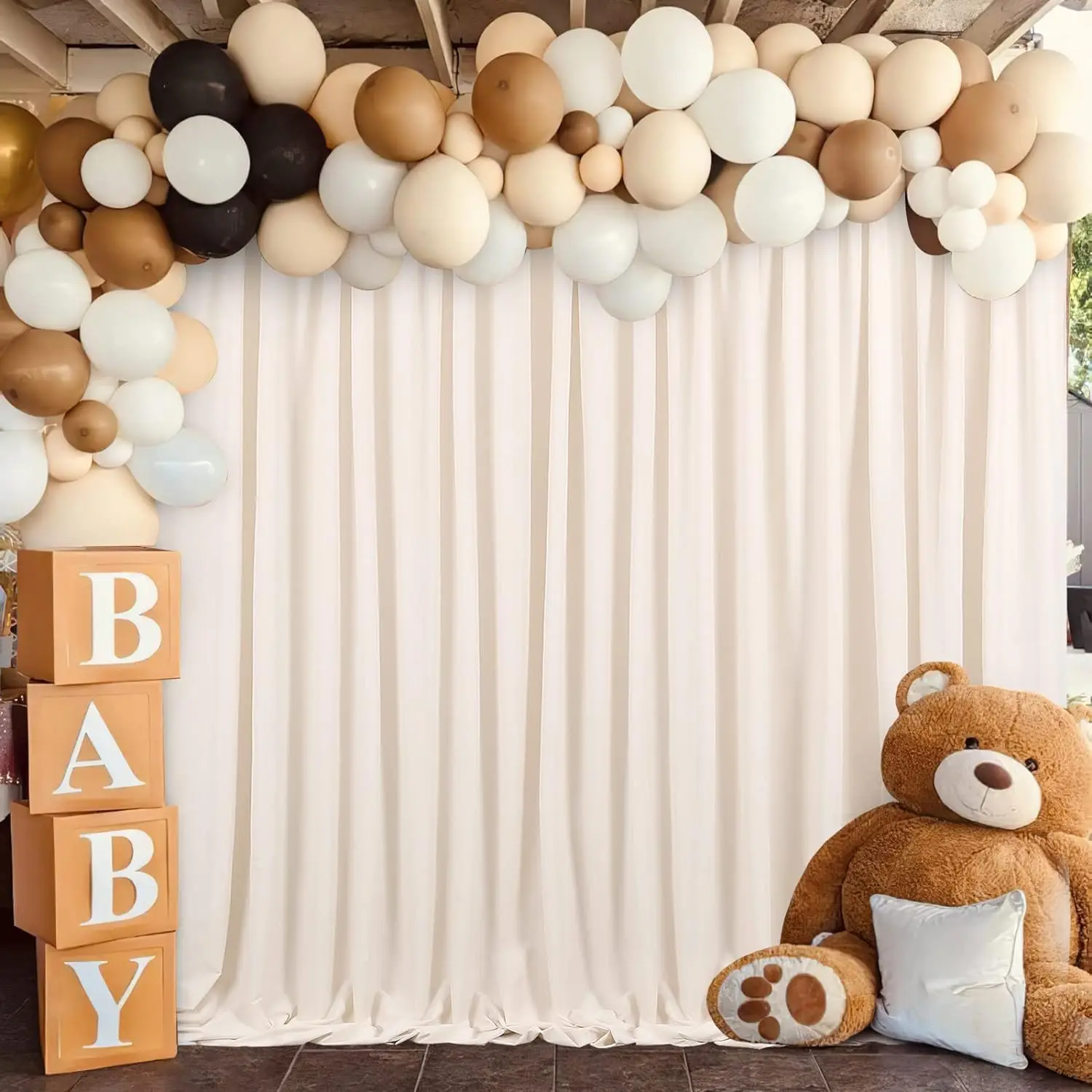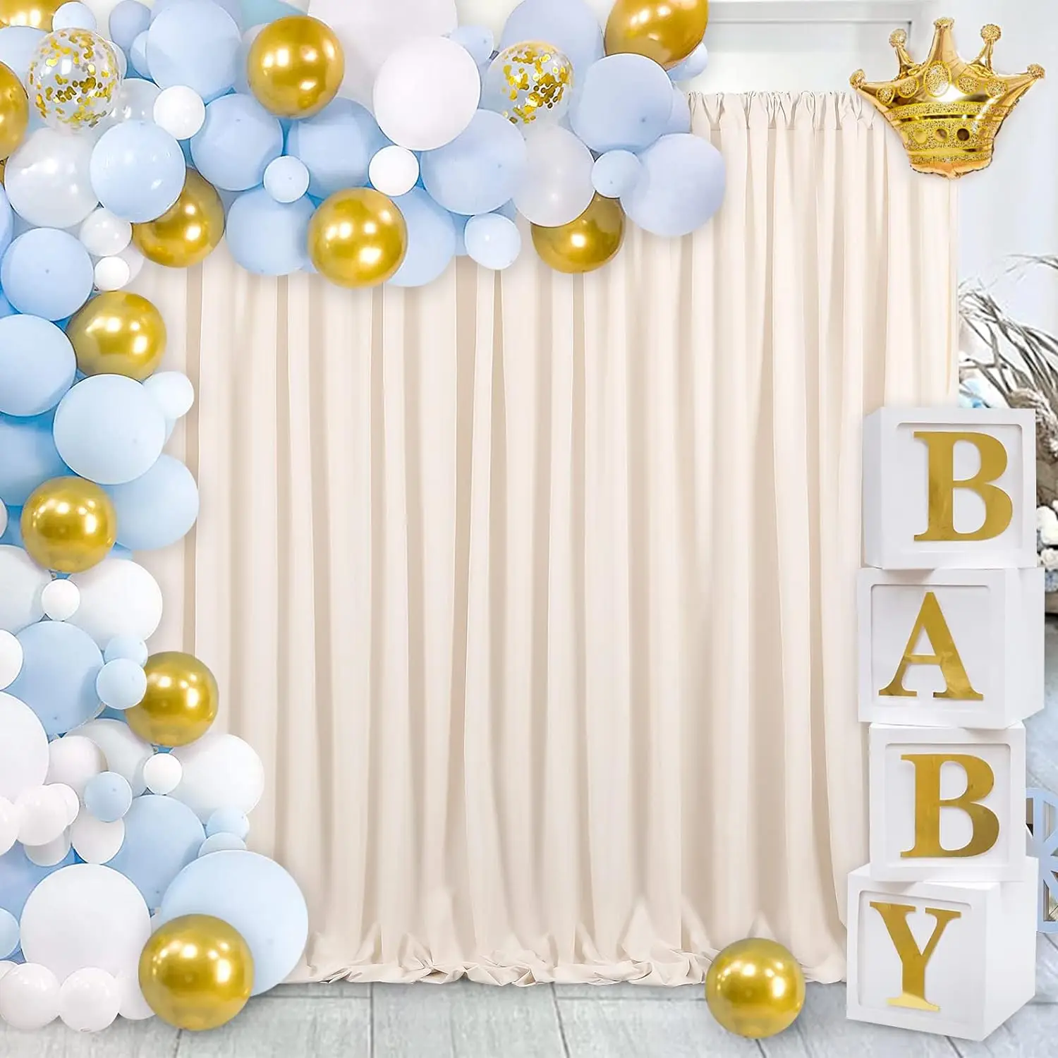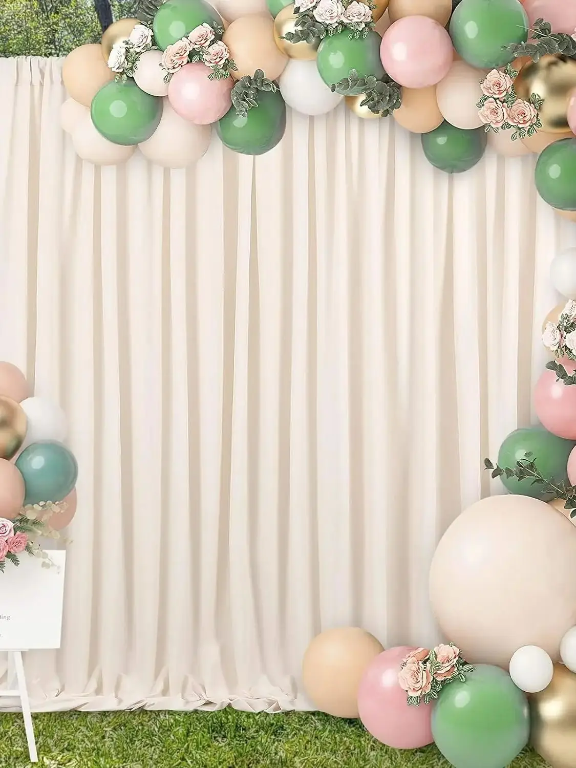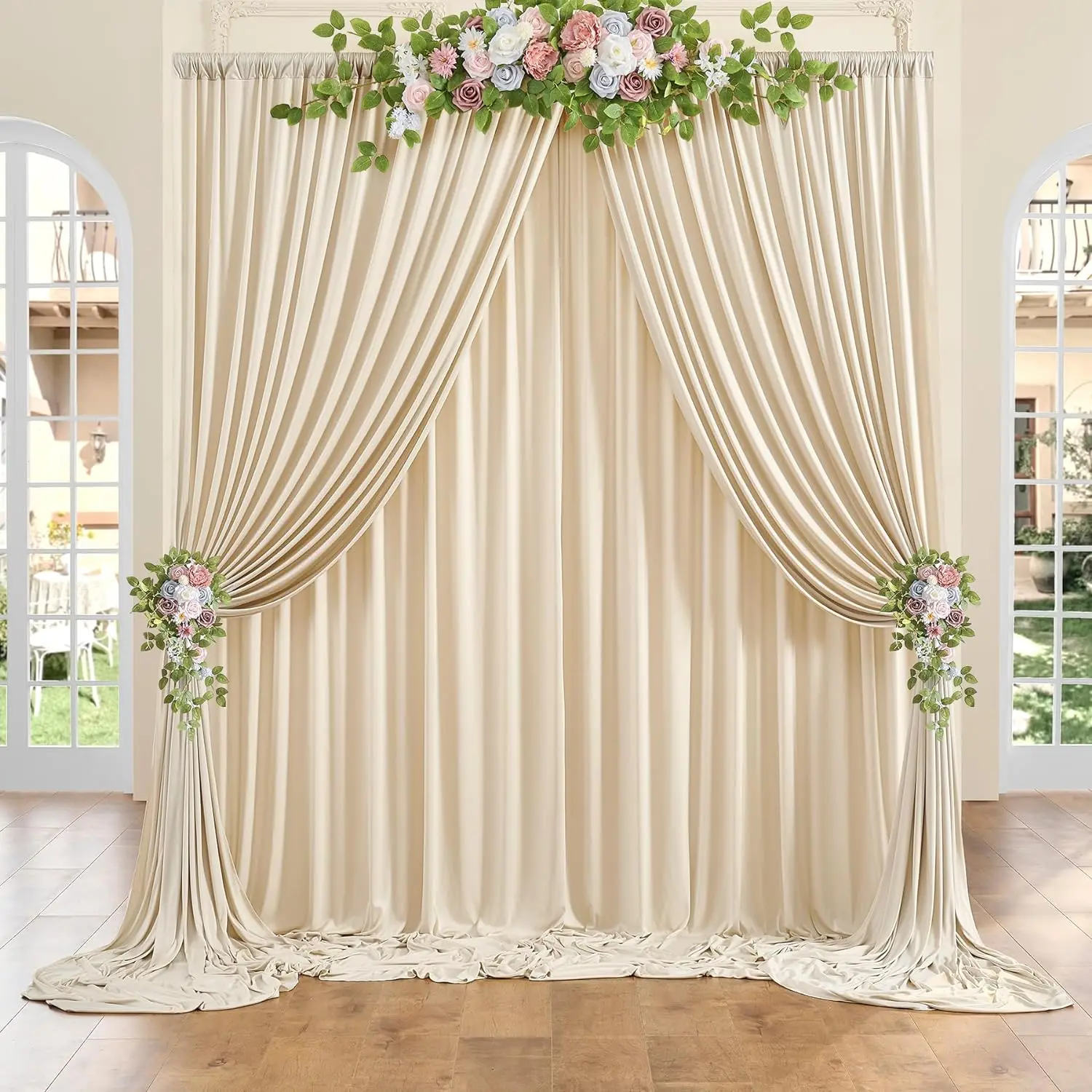 Ivory Backdrop Curtains: Package including 2 panels 5ft width by 10ft height polyester backdrop covering a total area of 20ft width by 10ft height.Please allow errors of 0.1ft.