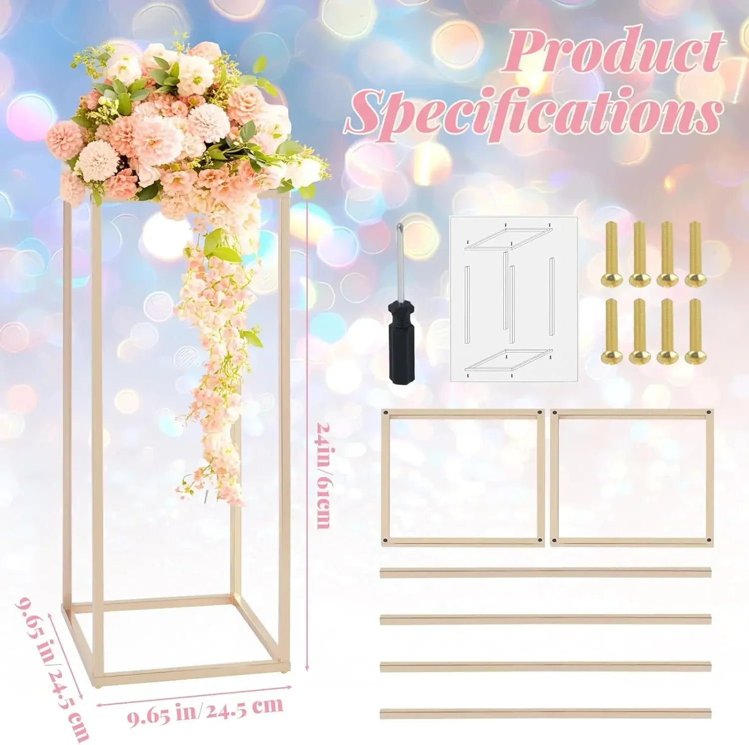 The wedding flower stand features a stable cubic design, ensuring stress evenly. It can withstand a maximum load of 30 pounds and can stably place many decorations.