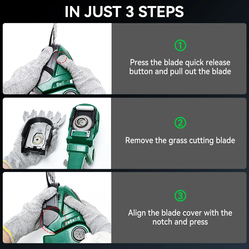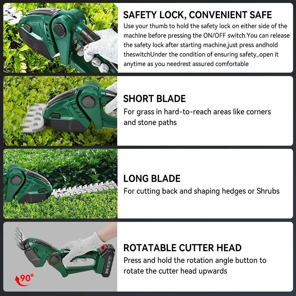 - Equipped with two different blades, it can be replaced easily and safely without tools.Meet the different needs of your garden.