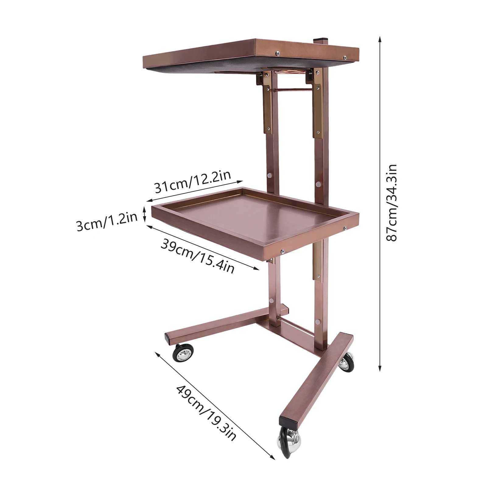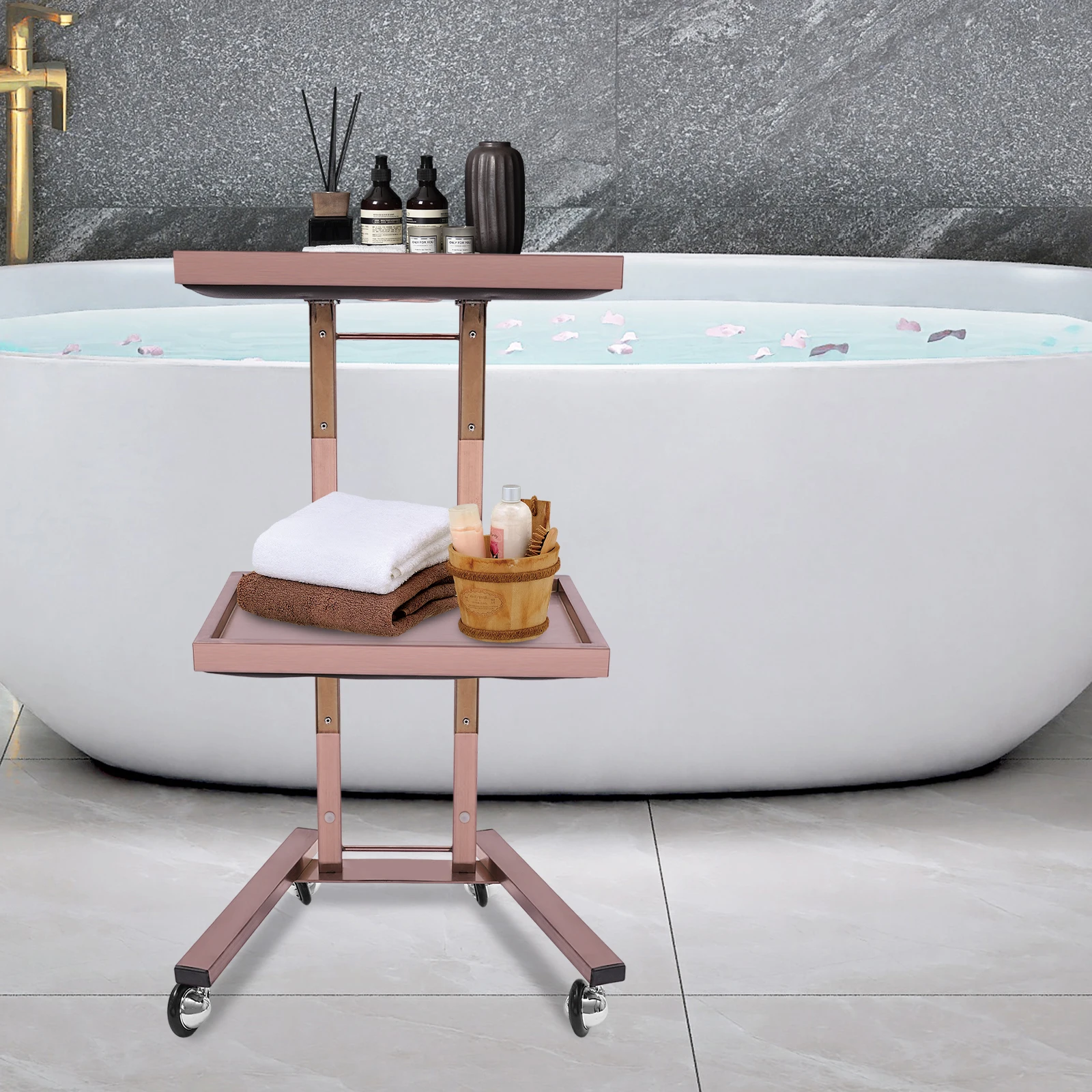 2-tier Salon Trolley Beauty Carts Cosmetic Tray Wheelcart Hairdressing Rolling Cart with Wheels Black/Rose-gold