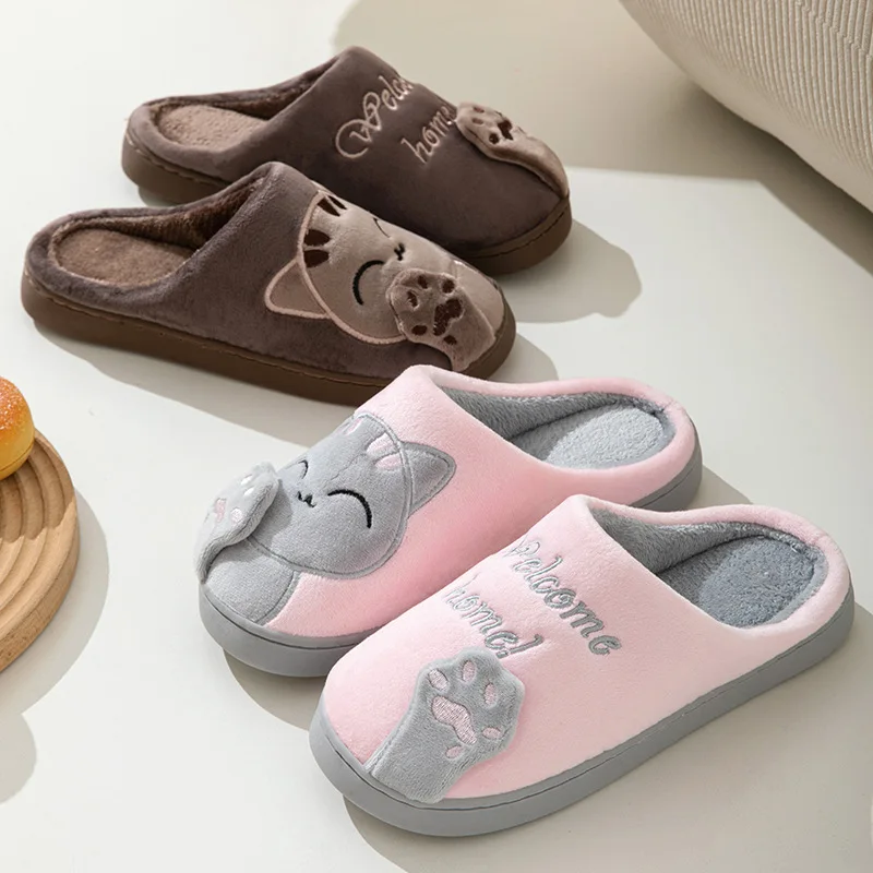 2025 New Cotton Slippers Women's Autumn and Winter New Cartoon Lucky Cat Korean Version Cute Warm Indoor Home