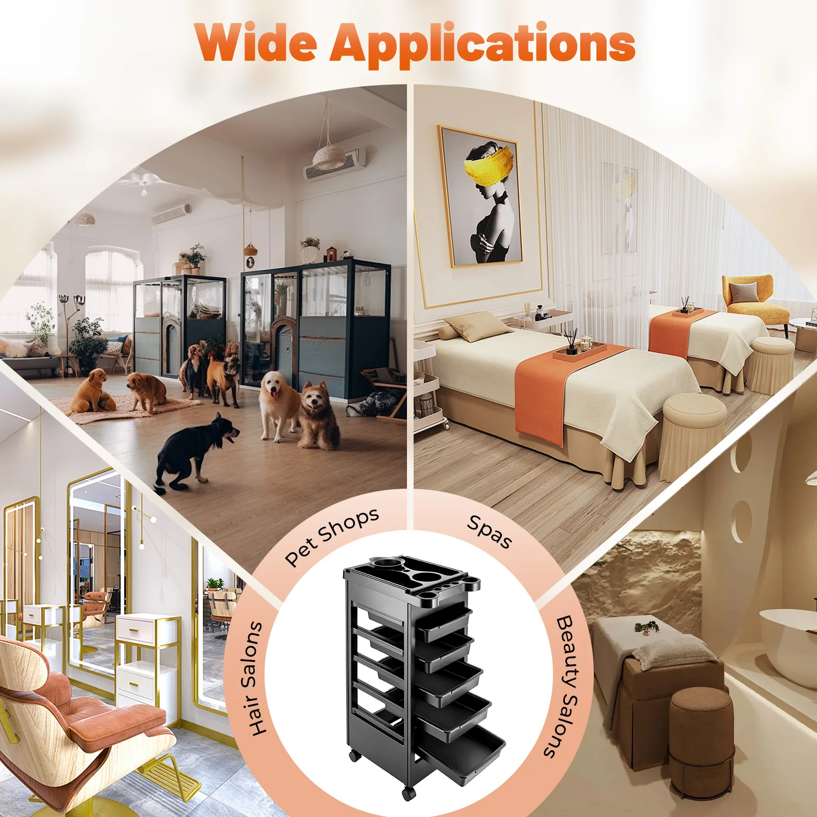 5-Layer Beauty Salon Spa Hair Styling Station Trolley, Equipment Rolling Storage Tray Cart, with Wheels and 5 Drawers