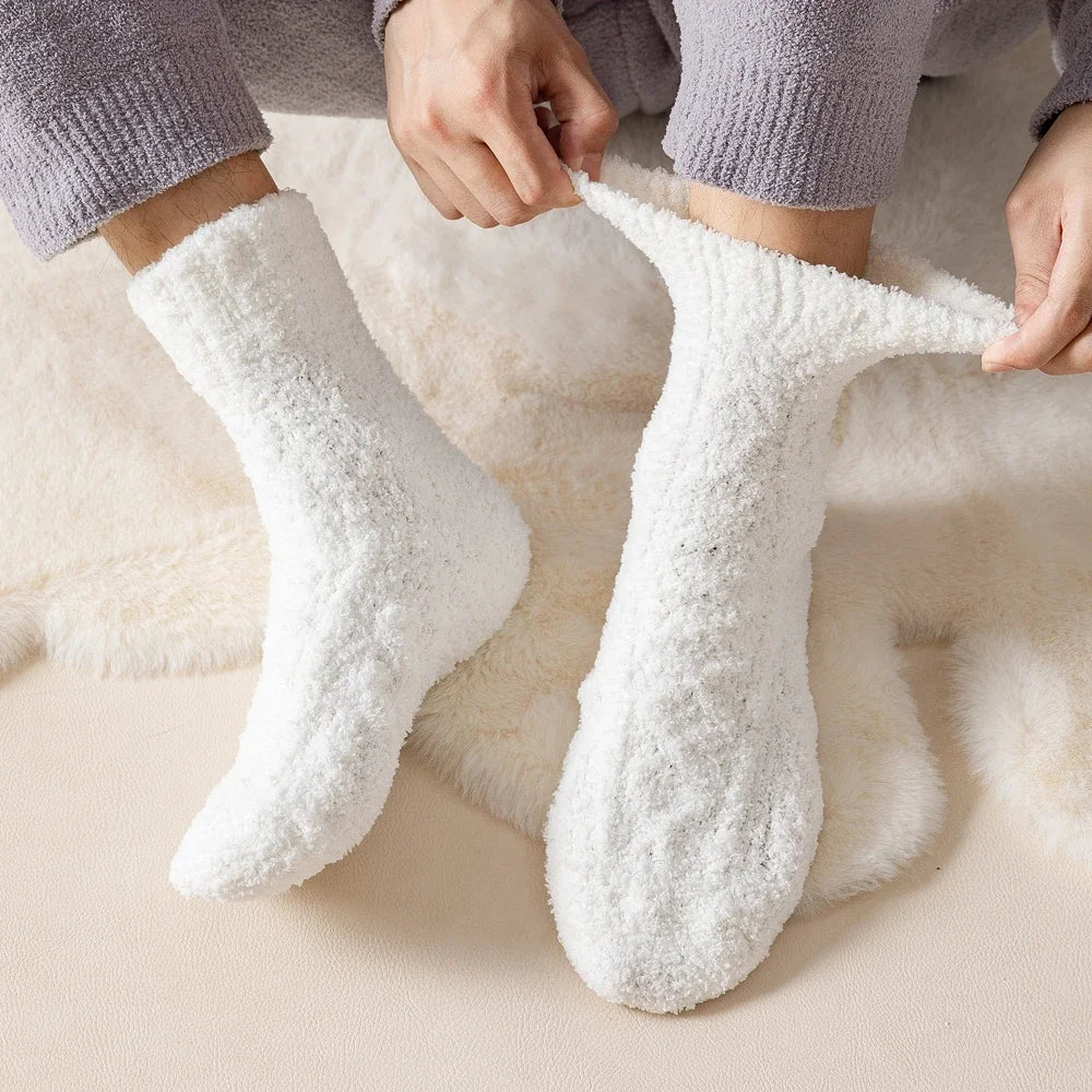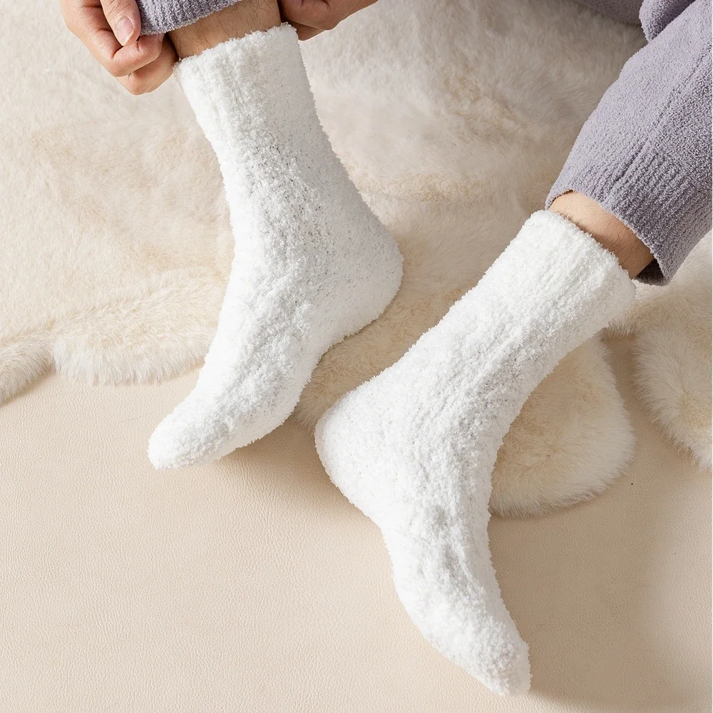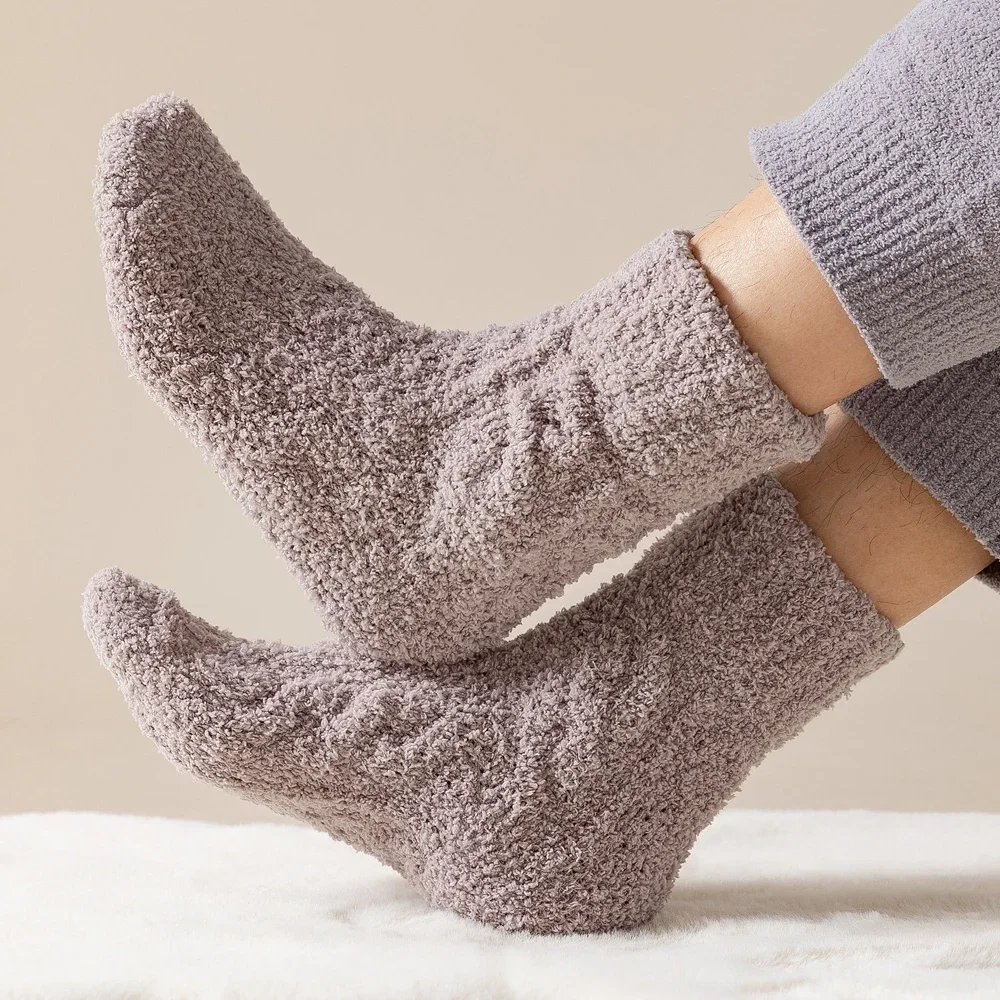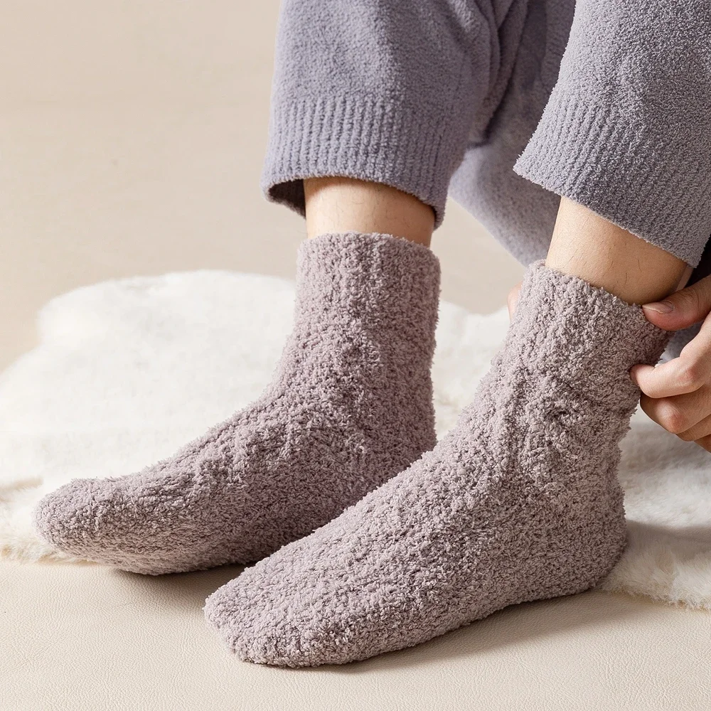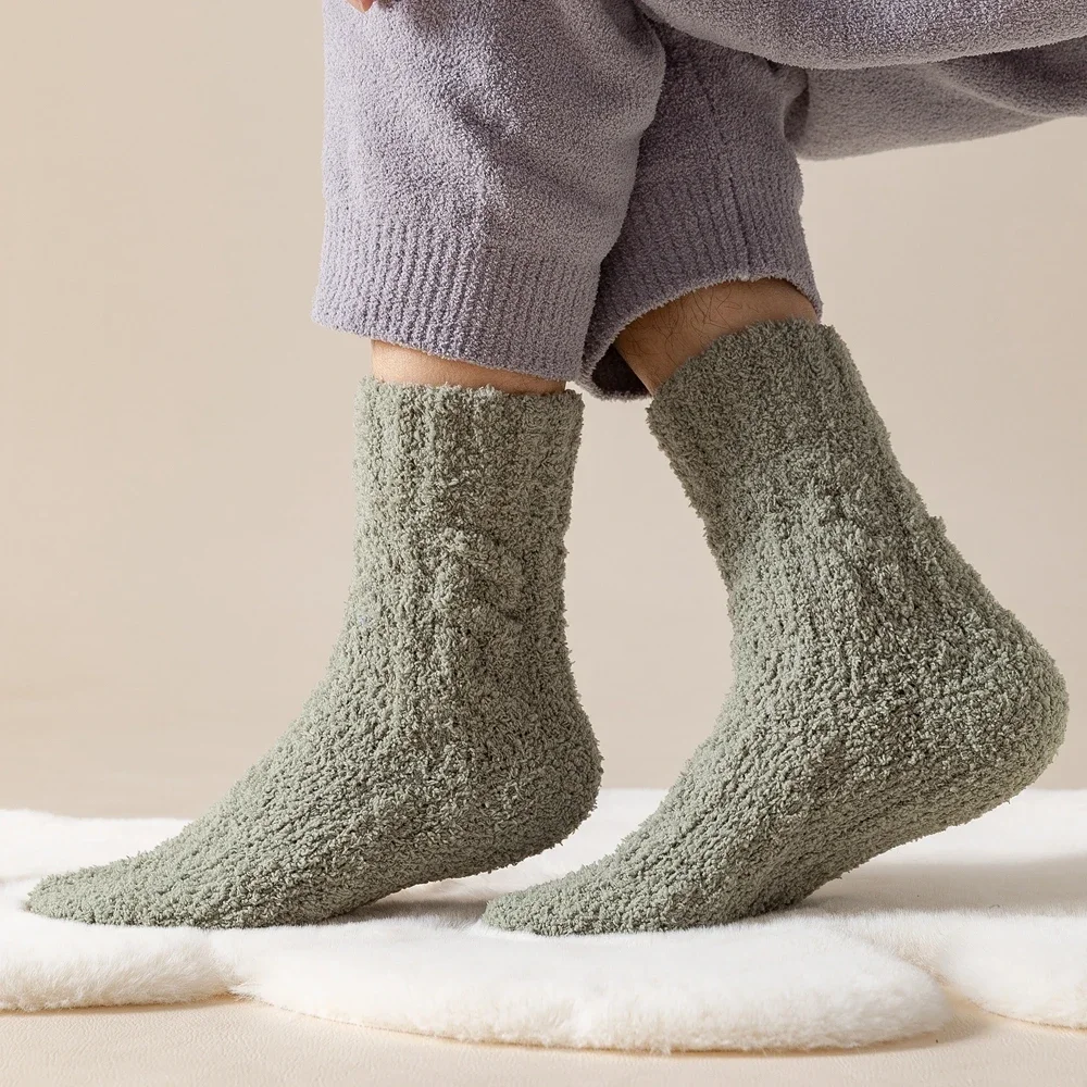 5 Pairs Thick Warm Winter Socks Men Coral Fleece Thermal High Quality Middle Tube Cozy Fluffy Sleeping Socks