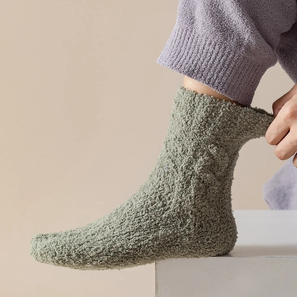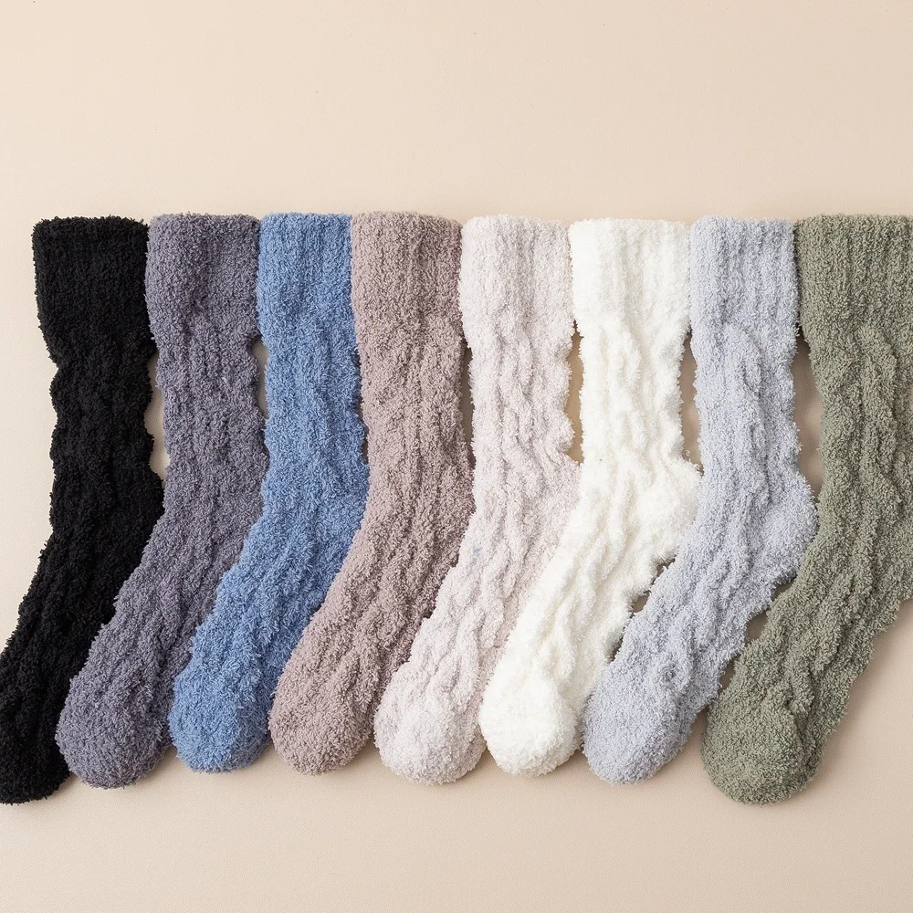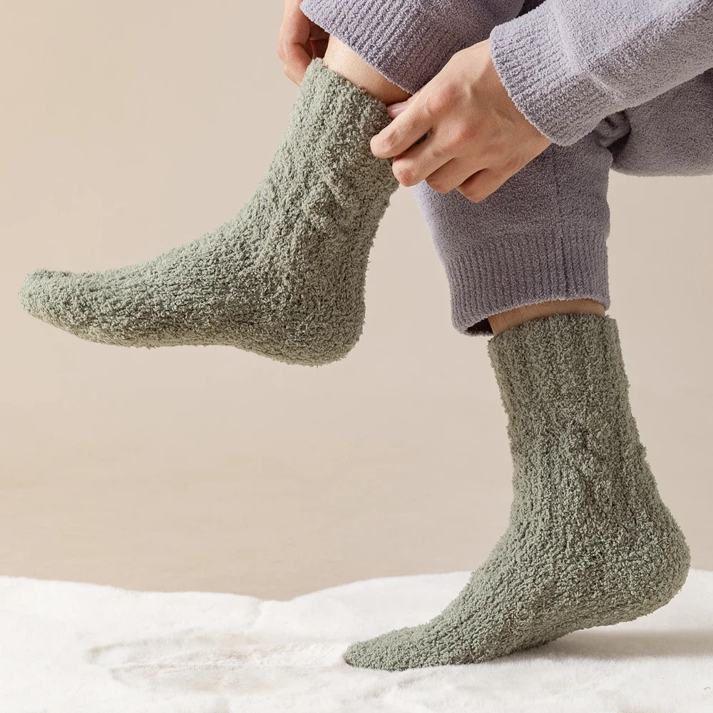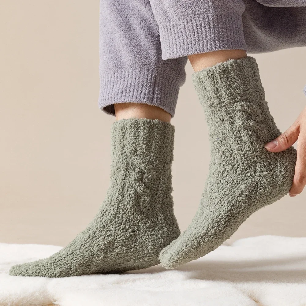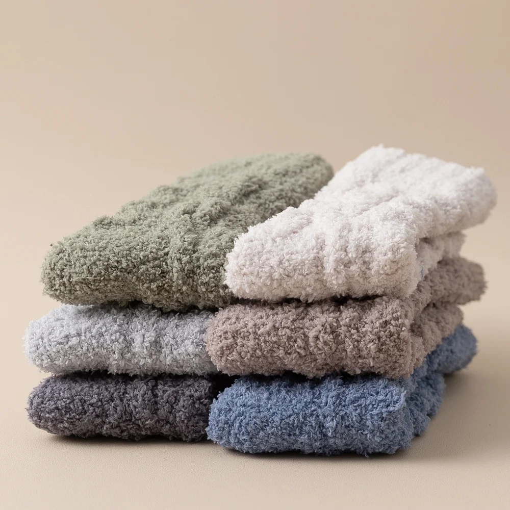 5 Pairs Thick Warm Winter Socks Men Coral Fleece Thermal High Quality Middle Tube Cozy Fluffy Sleeping Socks