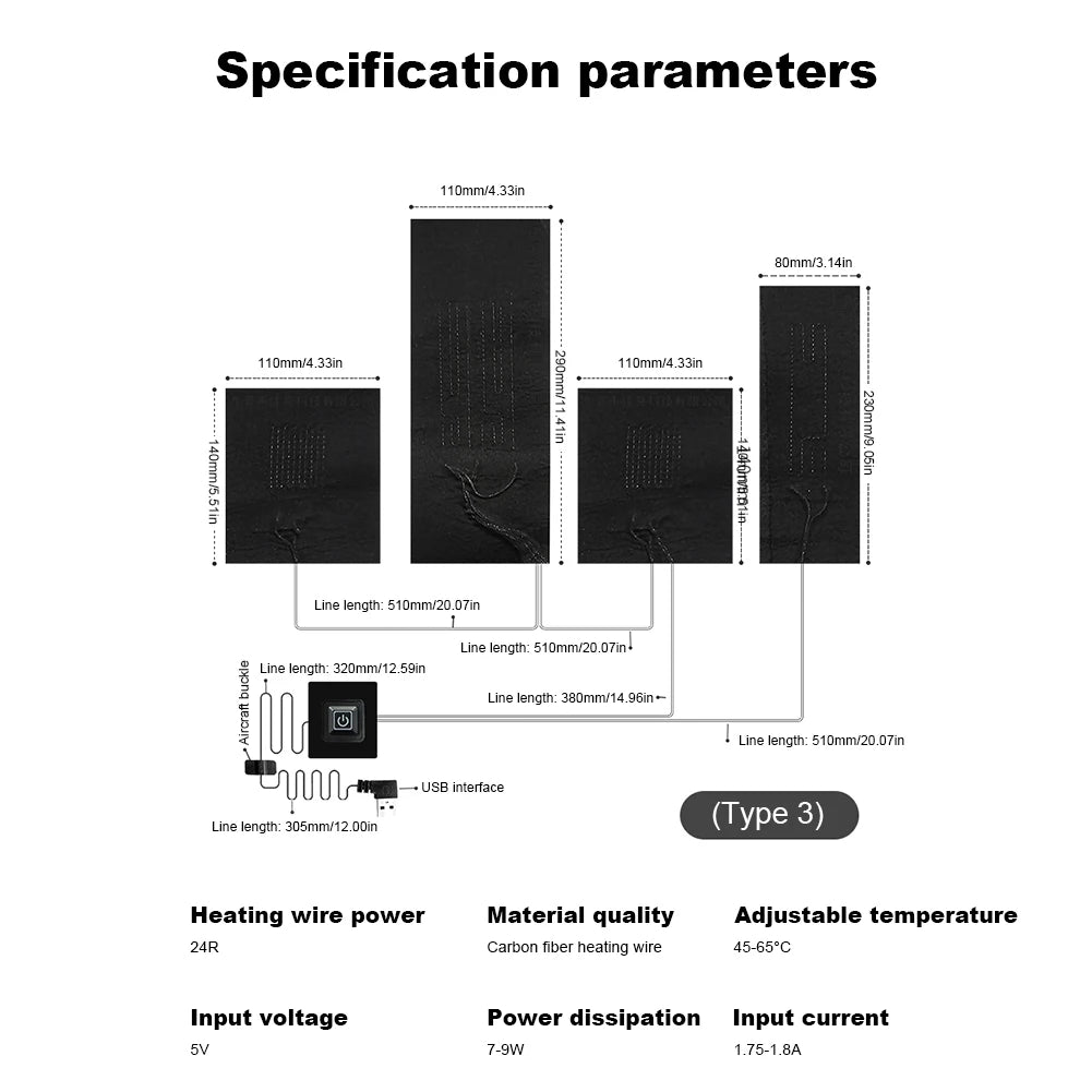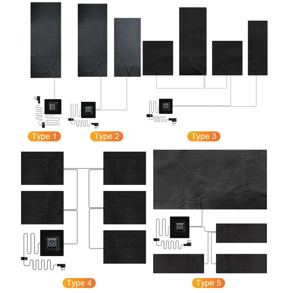Temperature Control Pad Waterproof Electric Heating Sheet 3 Gear Adjustable Cloth Jacket Heater Pads 5V DIY Heat Clothing for Camping Hiking