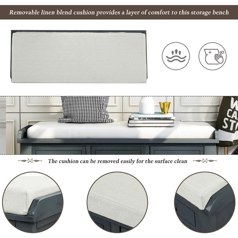 - Removable linen blend cushion provides a layer of comfort to this storage bench.The cushion can be removed easily for the surface clean.