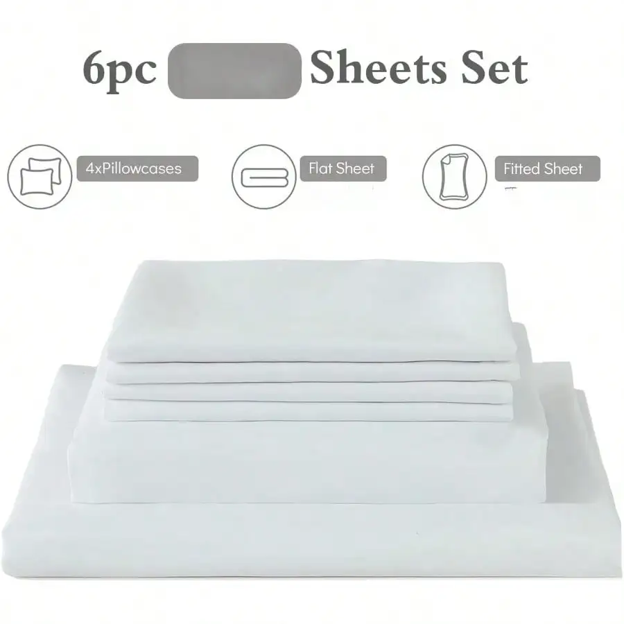 6pcs Sheet Set - Ultra Soft BedSheets - Brushed Microfiber - Deep Pockets Cooling & Breathable
