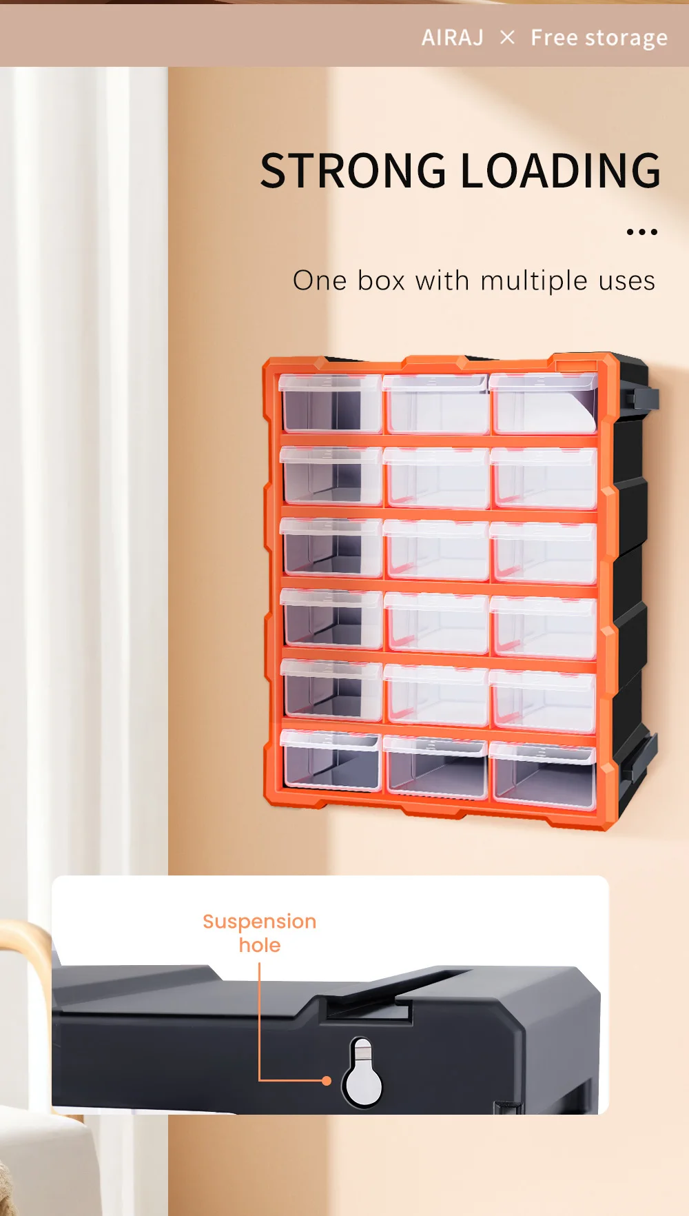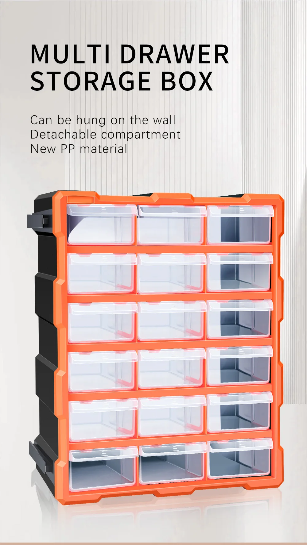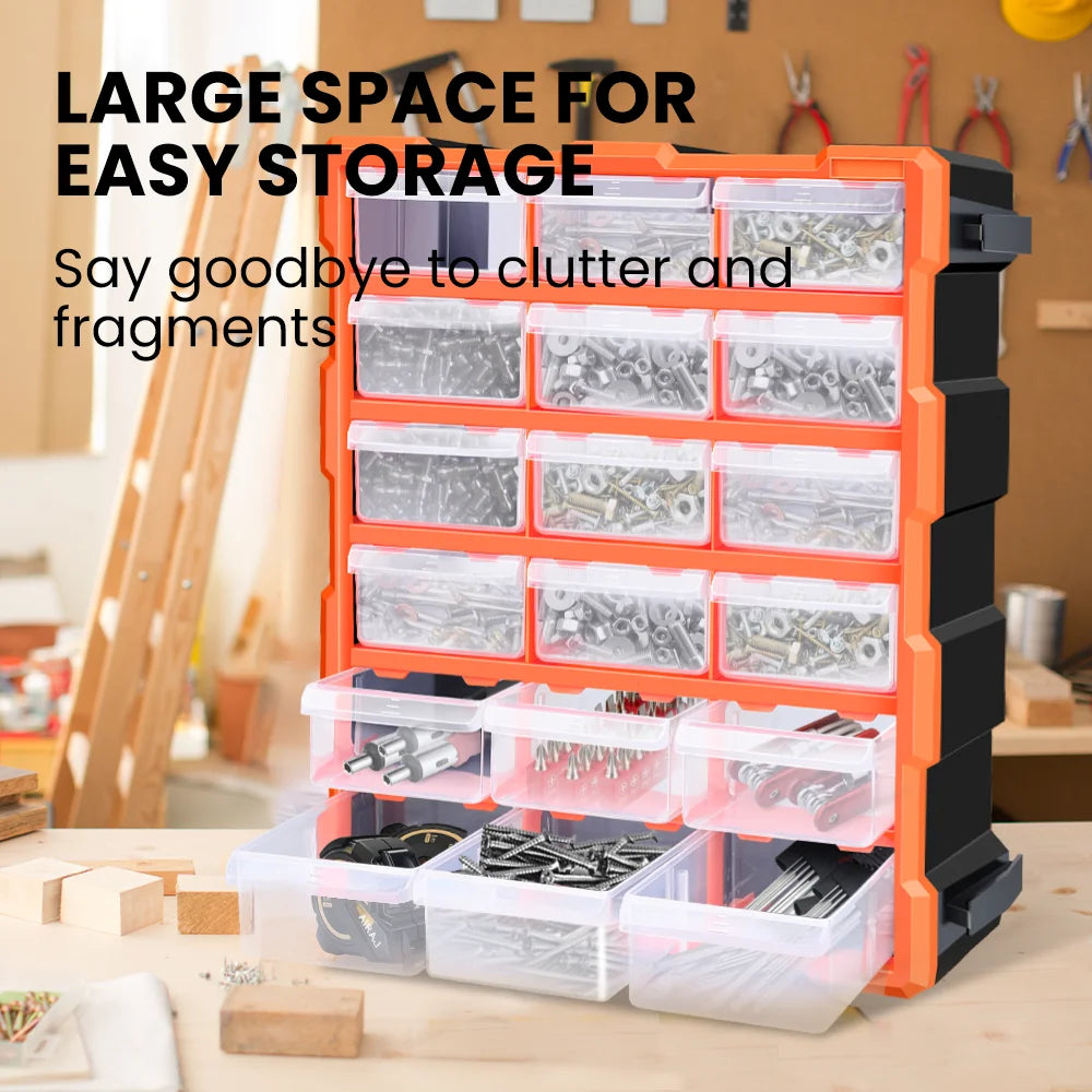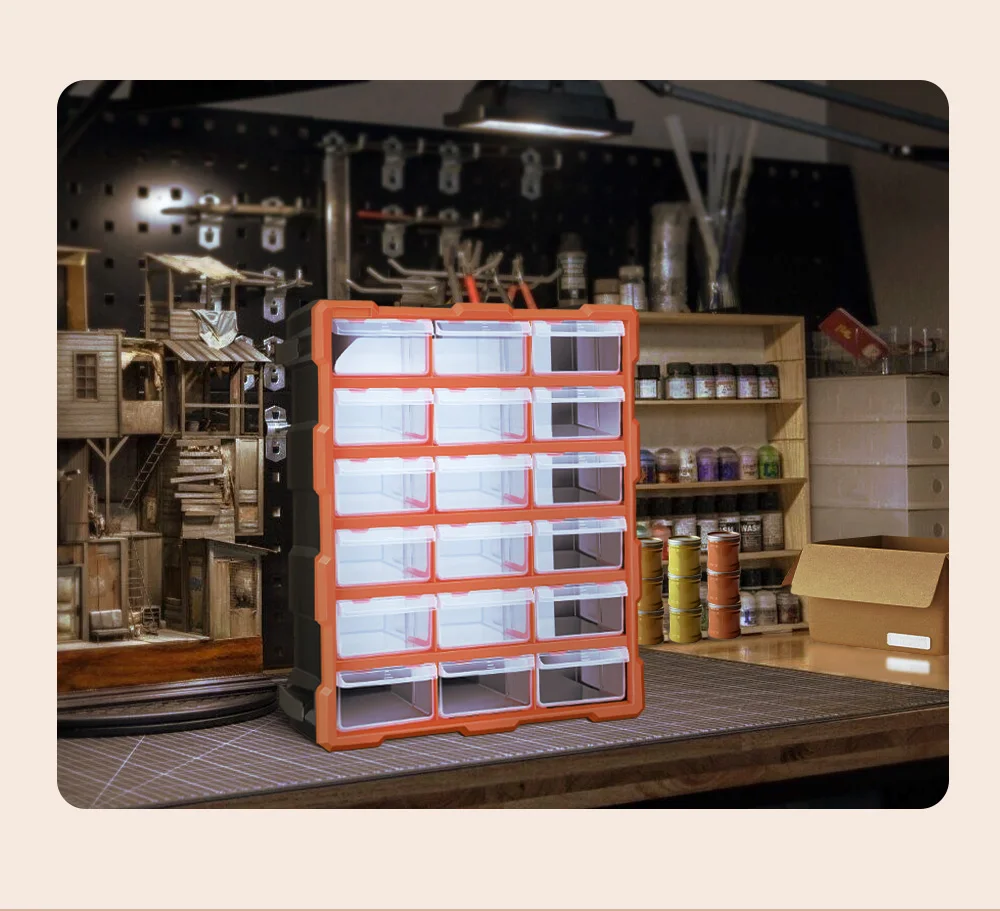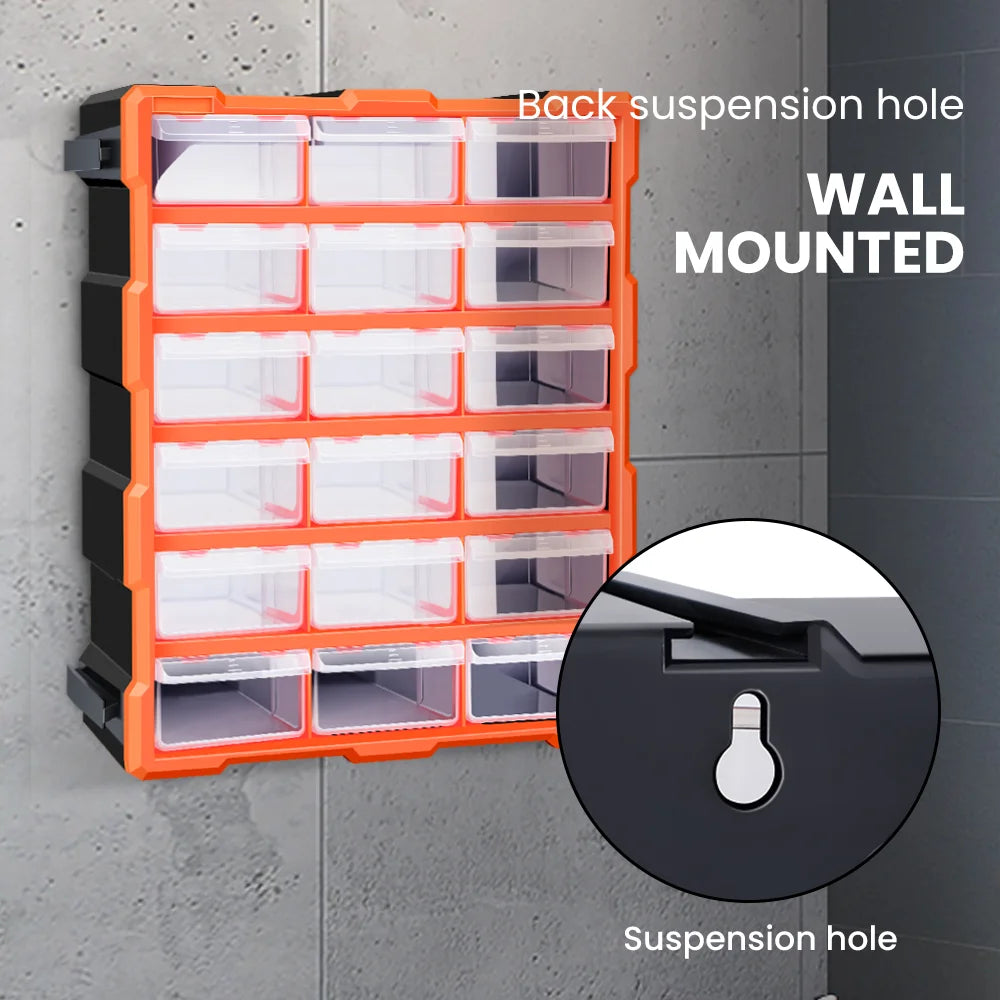 AIRAJ Multi-Drawer Storage Organizer - 18 Slots, Plastic Parts & Crafts Cabinet for Desk or Wall Mount, Ideal for Hardware, Bead