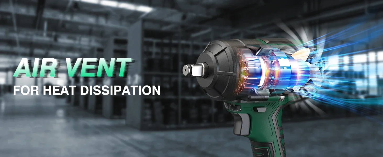 Brake-stop technology: Auto-reduces torque when nuts loosen, preventing injuries from flying debris.
