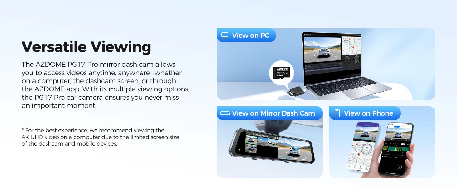 AZDOME 4K+2.5K Dash Cam PG17 Pro Dual HDR Rear View Mirror Camera STARVIS2 Sensor 5G WiFi OTA Upgrade Timeline Playback