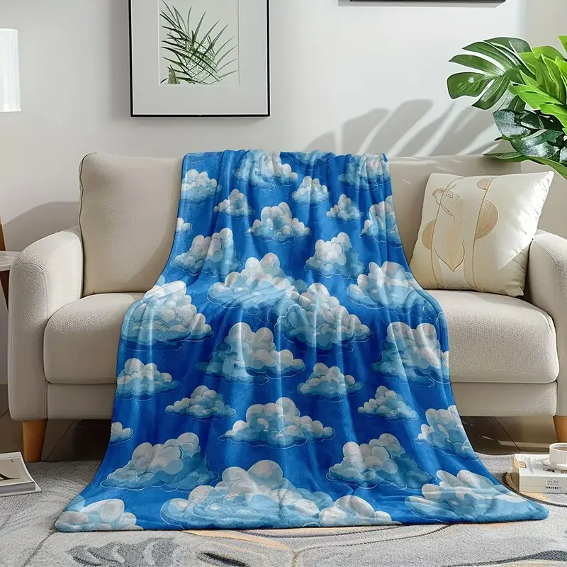 Blue sky cloud pattern flannel blanket is suitable for bedding, office, home, camping, warming, sofa, Christmas and Halloween