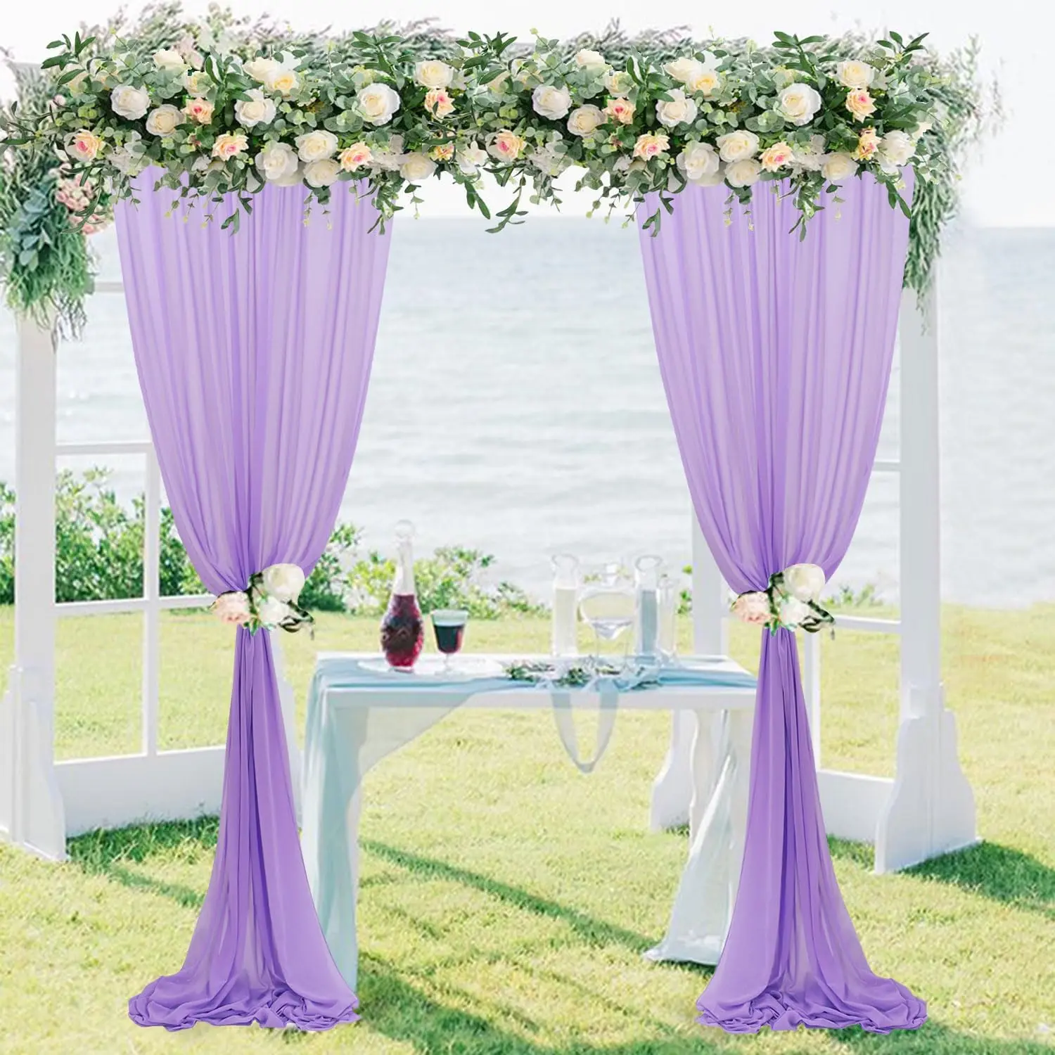 Chiffon Backdrop Curtain 5ftx10ft Light Purple Voile Sheer Curtains 4 Panels Romantic Wedding Party Decor Polyester Chiffon Fabr