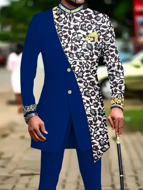 Classic African National Printing Batik Men's Casual 2PCS Suit For Wedding Dinner Event Suit terno masculinos complete costume