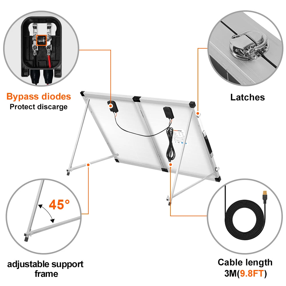 DOKIO 100W/160w/200w 18V Glass Folding Monocrystalline Waterproof Solar Panel with 12V Controller Kit from China