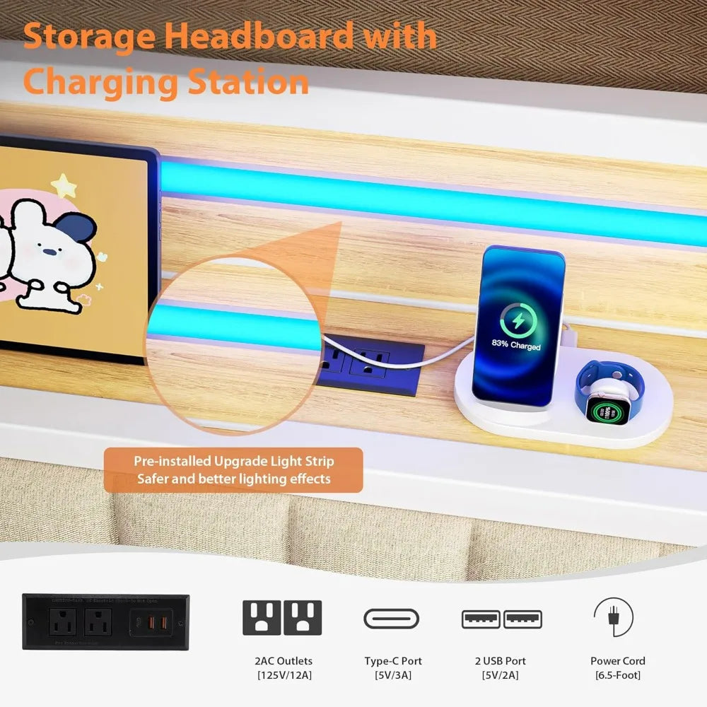 Special Feature: Charging Station LED Lighting Storage Headboard