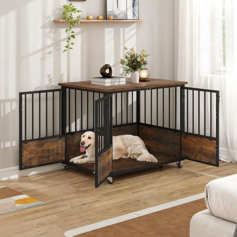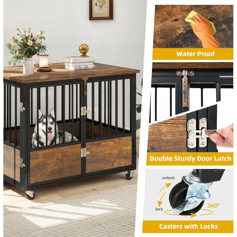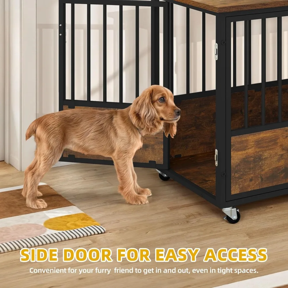 - Effortless Mobility: This dog cage furniture is equipped with 4 casters for easy movement. Say goodbye to heavy lifting, effortlessly transport your furry friend's crate wherever needed