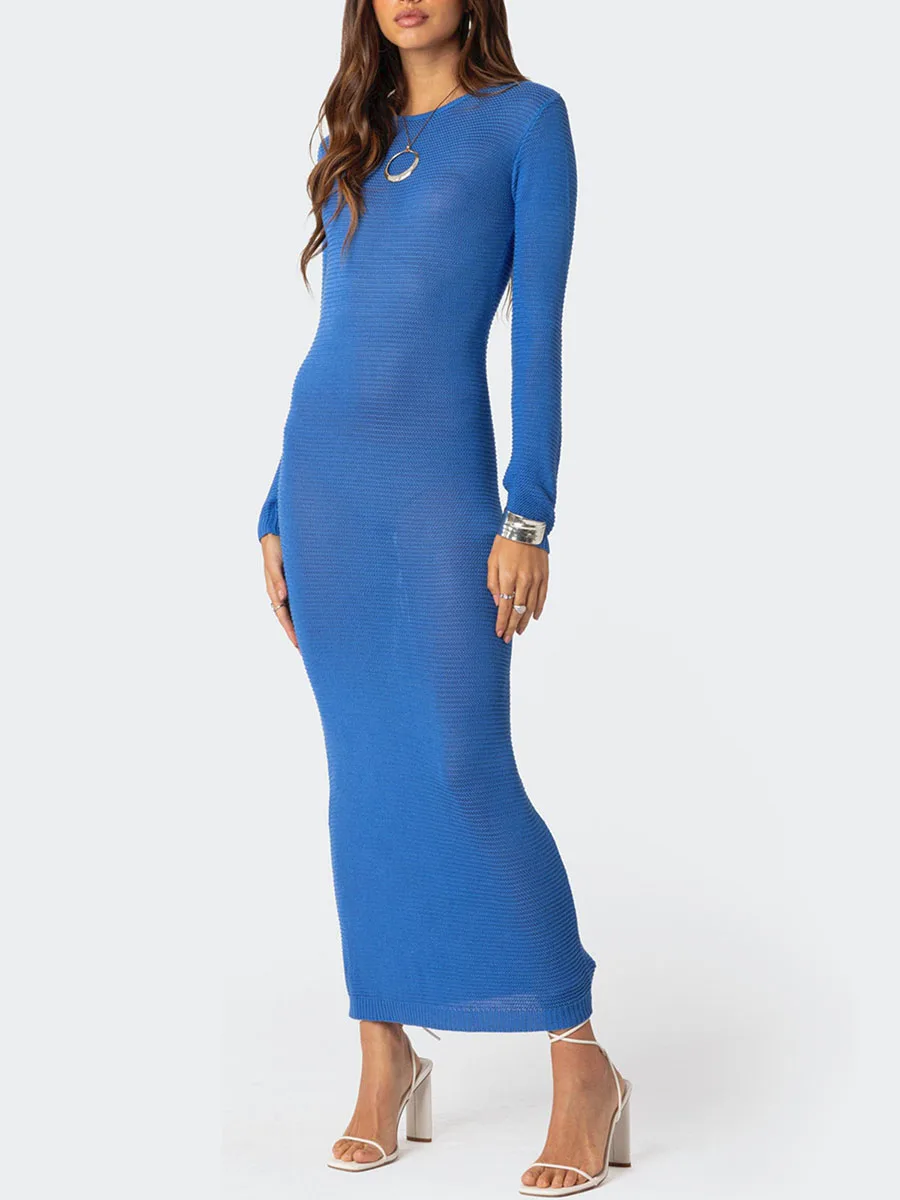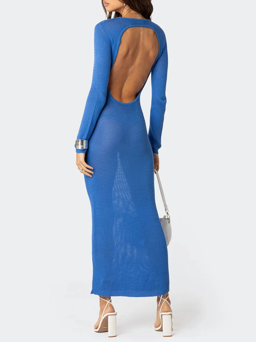 Women's Autumn Long Party Dresses Long Sleeve Crewneck Open Back Knit DressSize(cm)