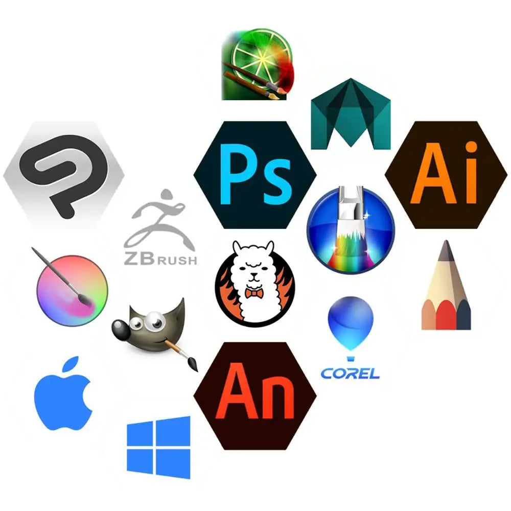 Compatible with Win 7 or macOS 10.12 or above. And it is compatible with most painting software, like Adobe Photoshop, Illustrator, Clip Studio, Lightroom, Sketchbook Pro, Manga Studio, CorelPainter, FireAlpaca, OpenCanvas, Paint Tool Sai2, Krita and so on.