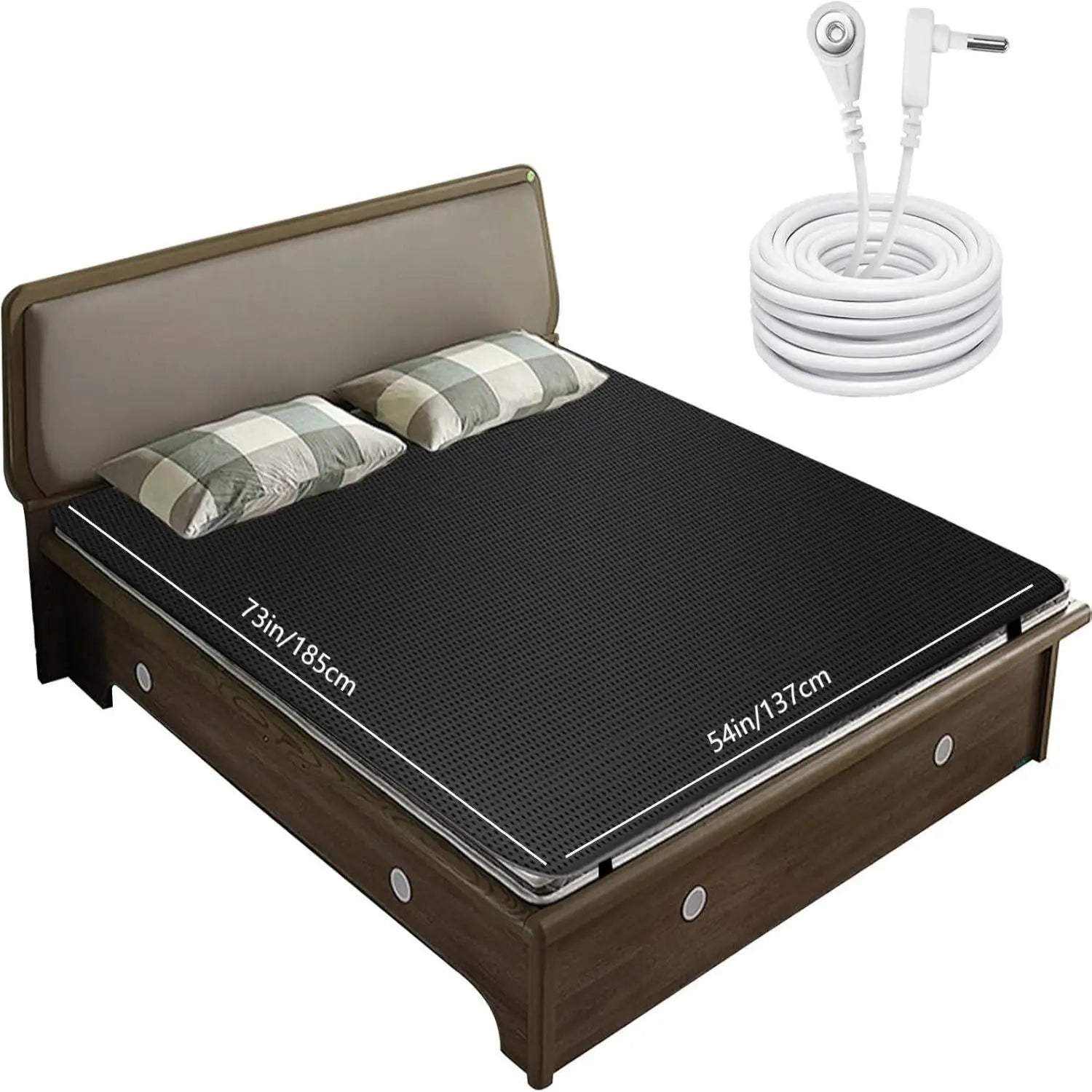 Grounded Optimal Sleeping Pad, Double, 137 x 185cm (53.93in x 72.83in), includes 5m cable and adapter, features conductive carbon leather instead of silver wire.