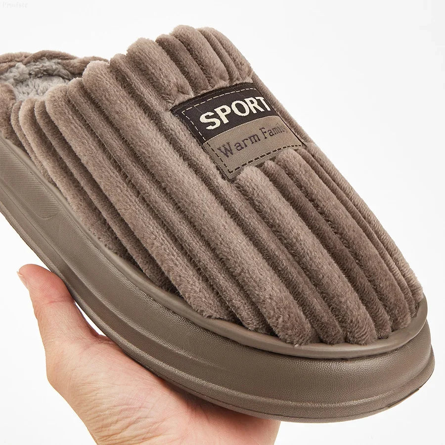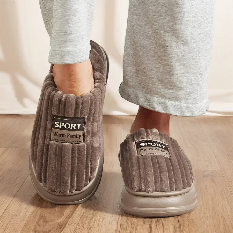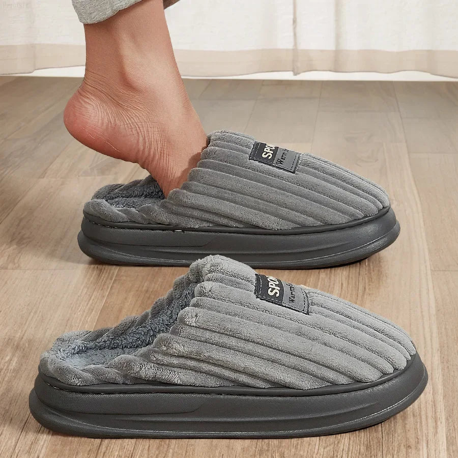 House Slippers For Men Furry Cozy Memory Foam Round Toe Couple Shoes Warm Winter Soft Plush Slippers