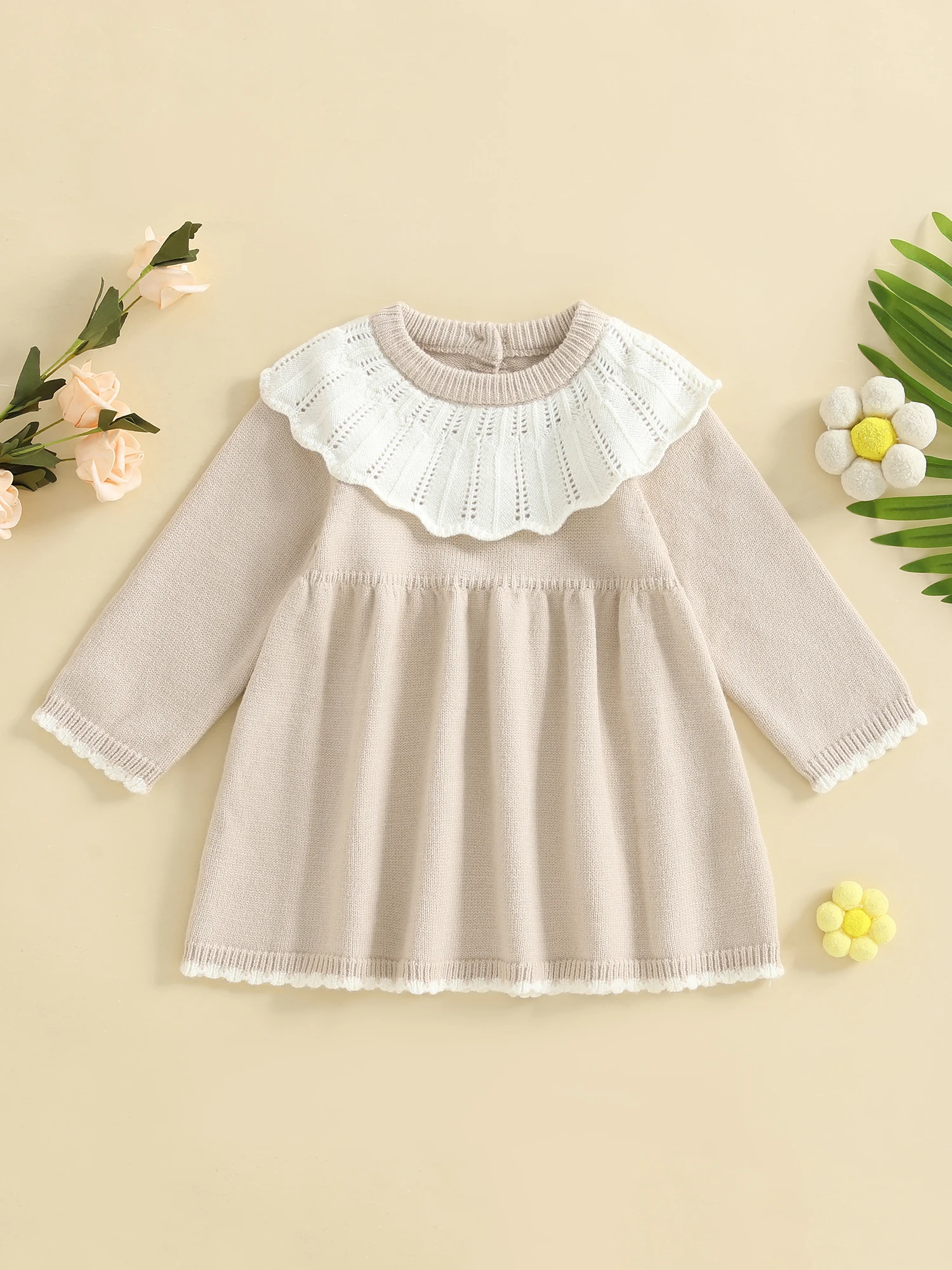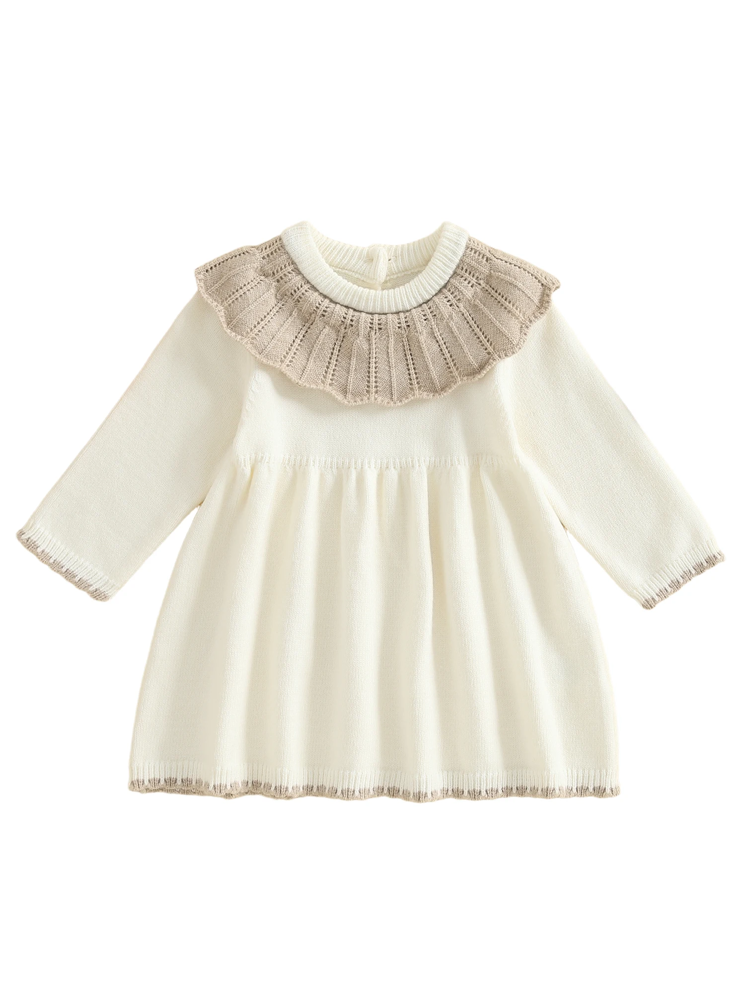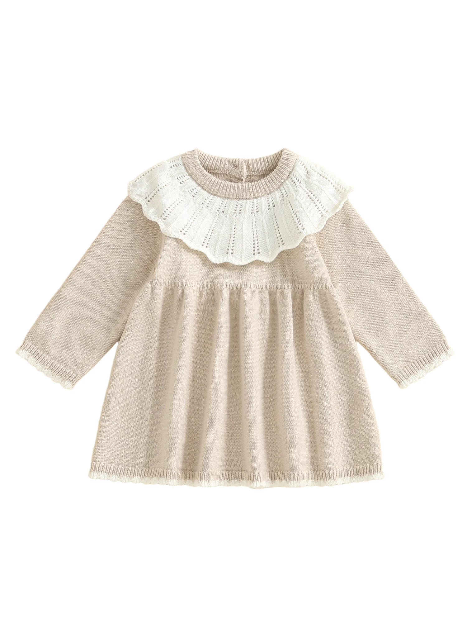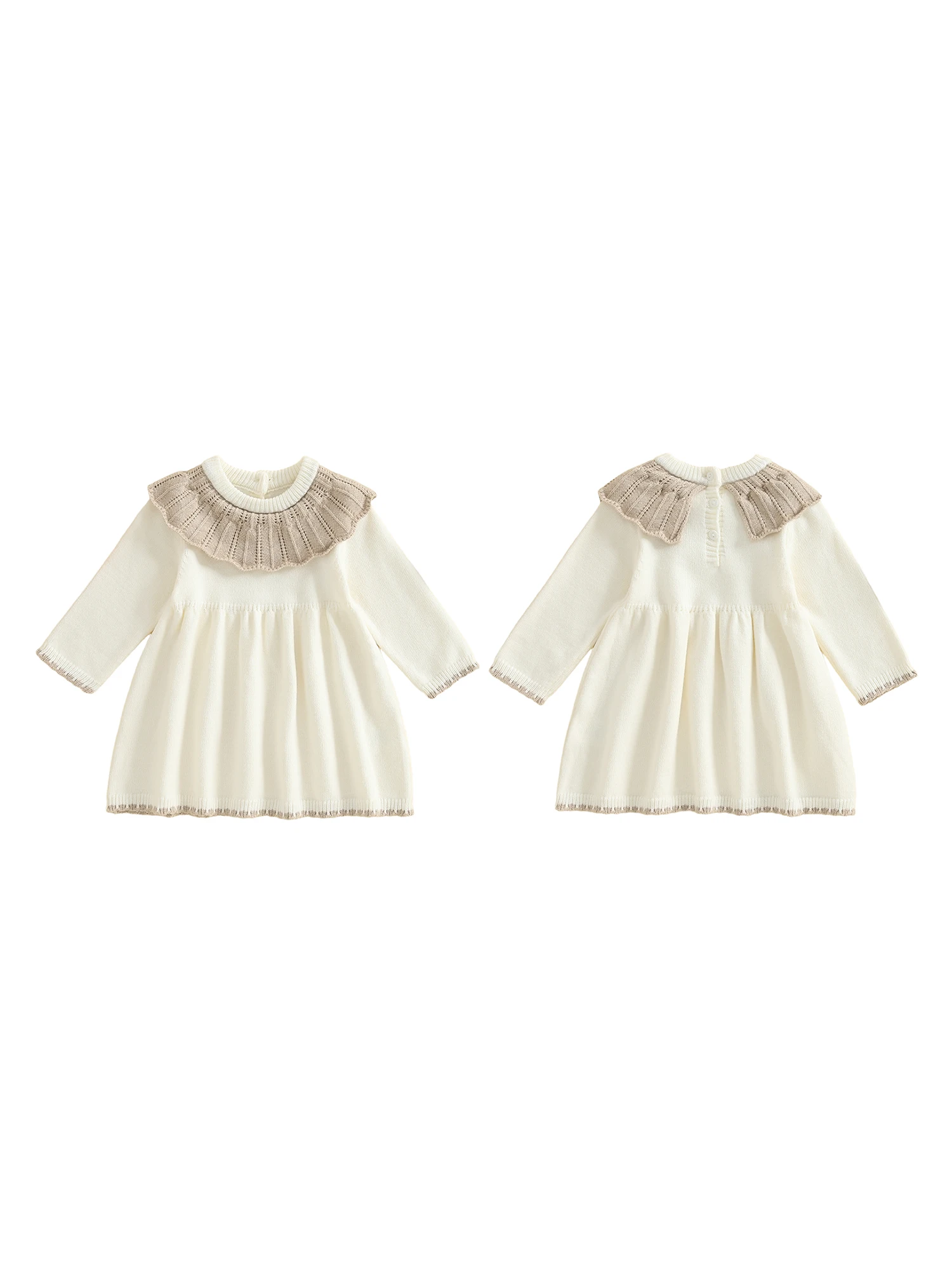 Toddler Baby Girls Ruffled Dress Fall Fashionable Contrast Color Round Neck Long Sleeve DressSize(cm)