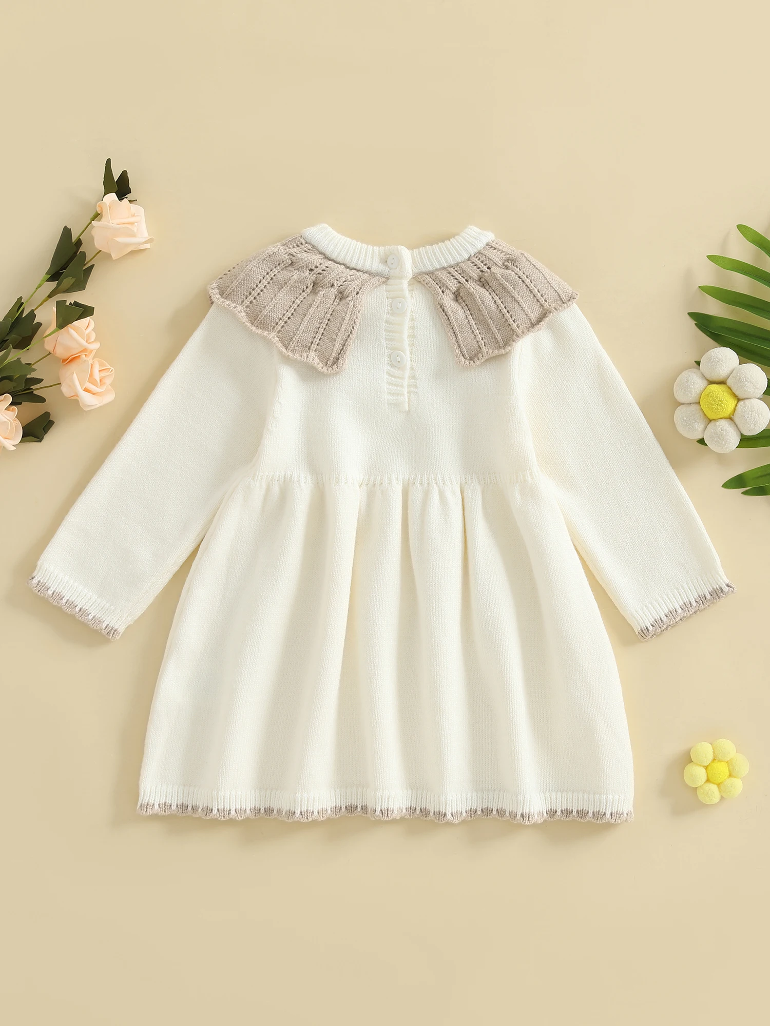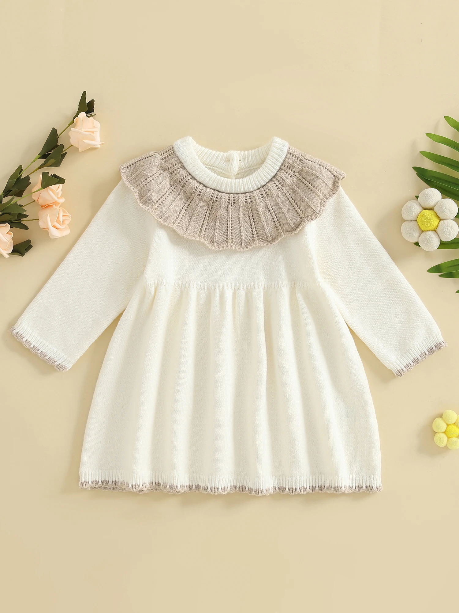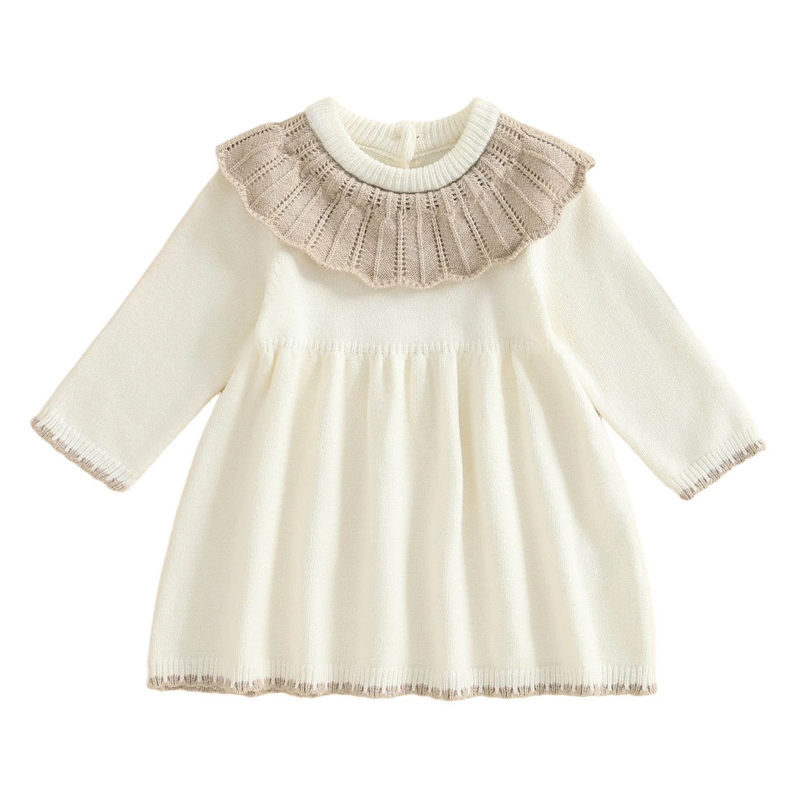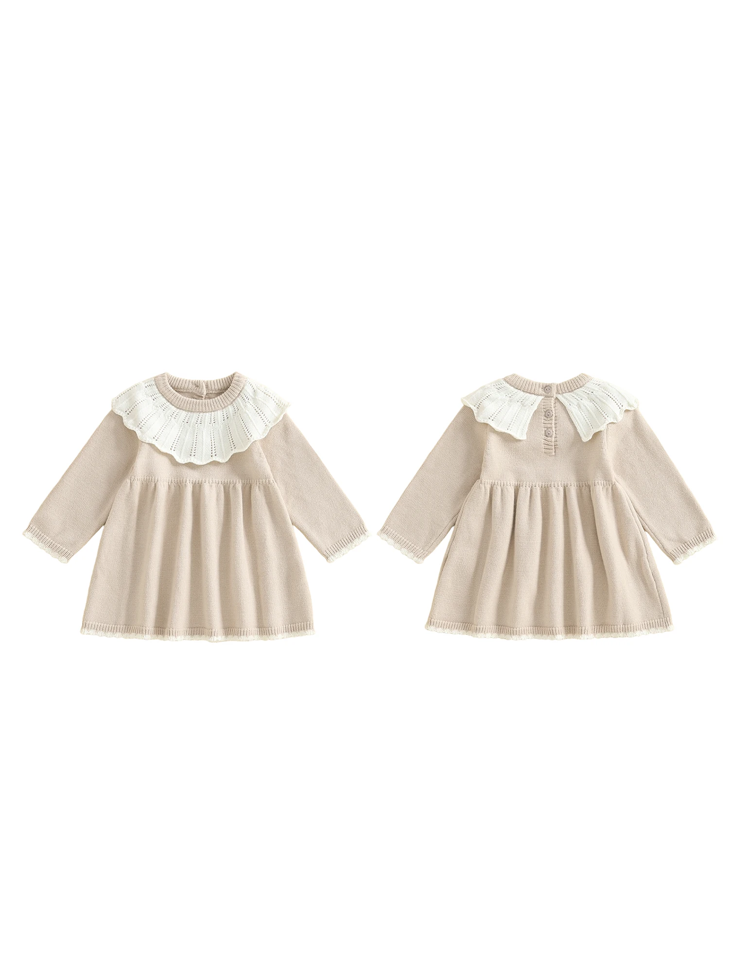 Toddler Baby Girls Ruffled Dress Fall Fashionable Contrast Color Round Neck Long Sleeve DressSize(cm)