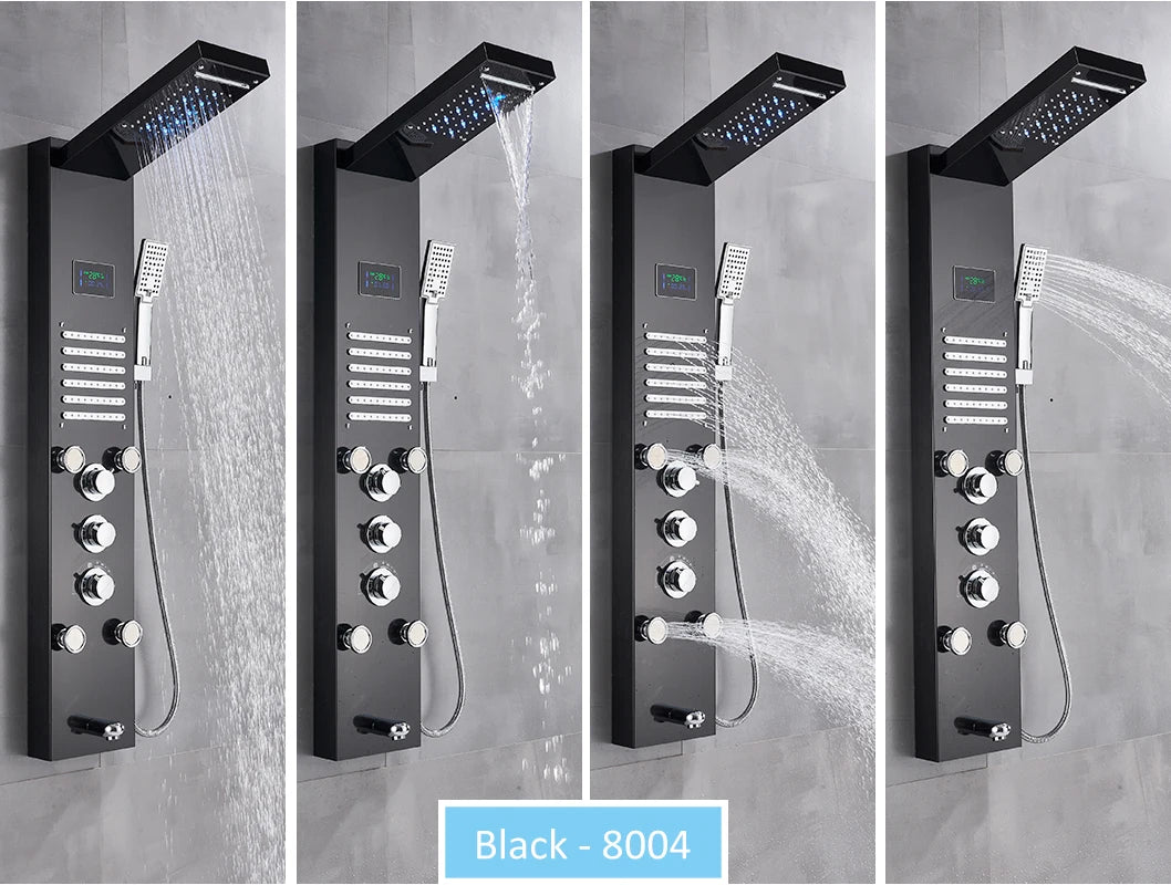 LED Shower Panel Tower System Rain Waterfall Shower Column Hydroelectricity LCD Display With Massage Body Spa Bath Shower Faucet