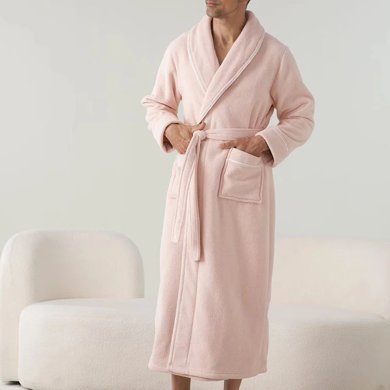 Luxurious Men s Plush Shawl Collar Bathrobe with Cozy Long Sleeves and Belt - Stay Warm and Stylish in this Soft Spa Robe