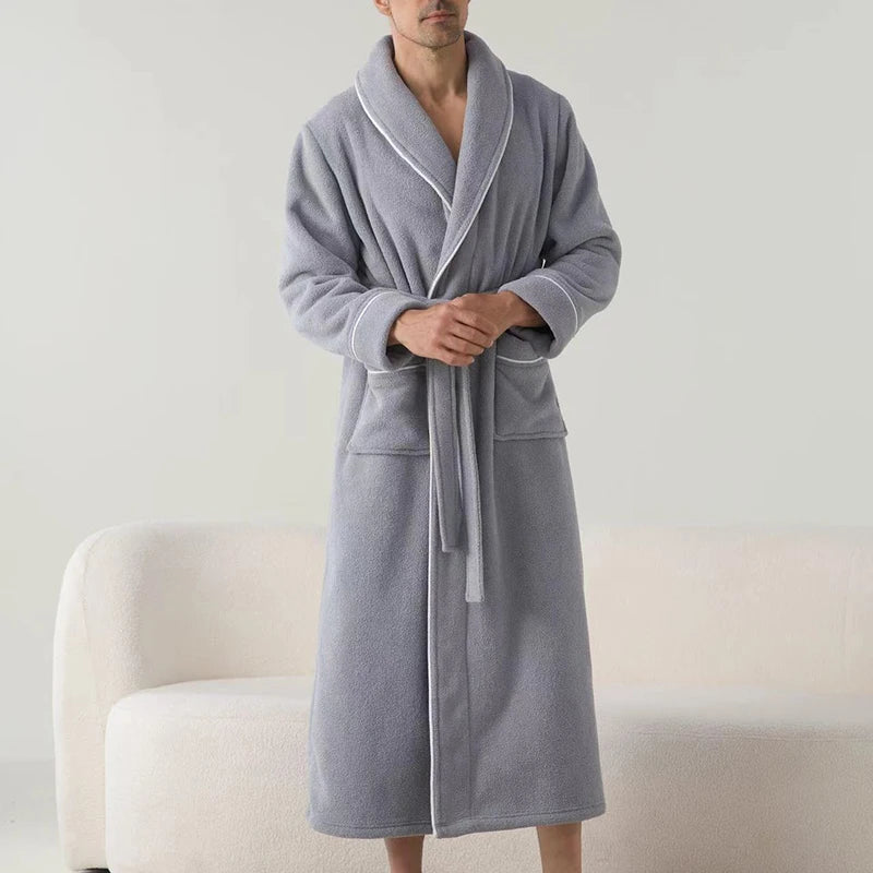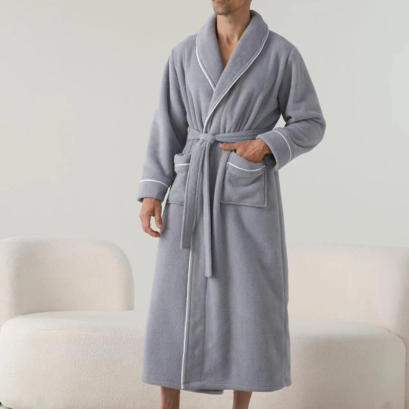 Soft robe for men; Bathrobes for men with a cozy shawl collar to keep your neck warm after bathing, long sleeves; Soft texture and classic design is both comfortable and stylish
