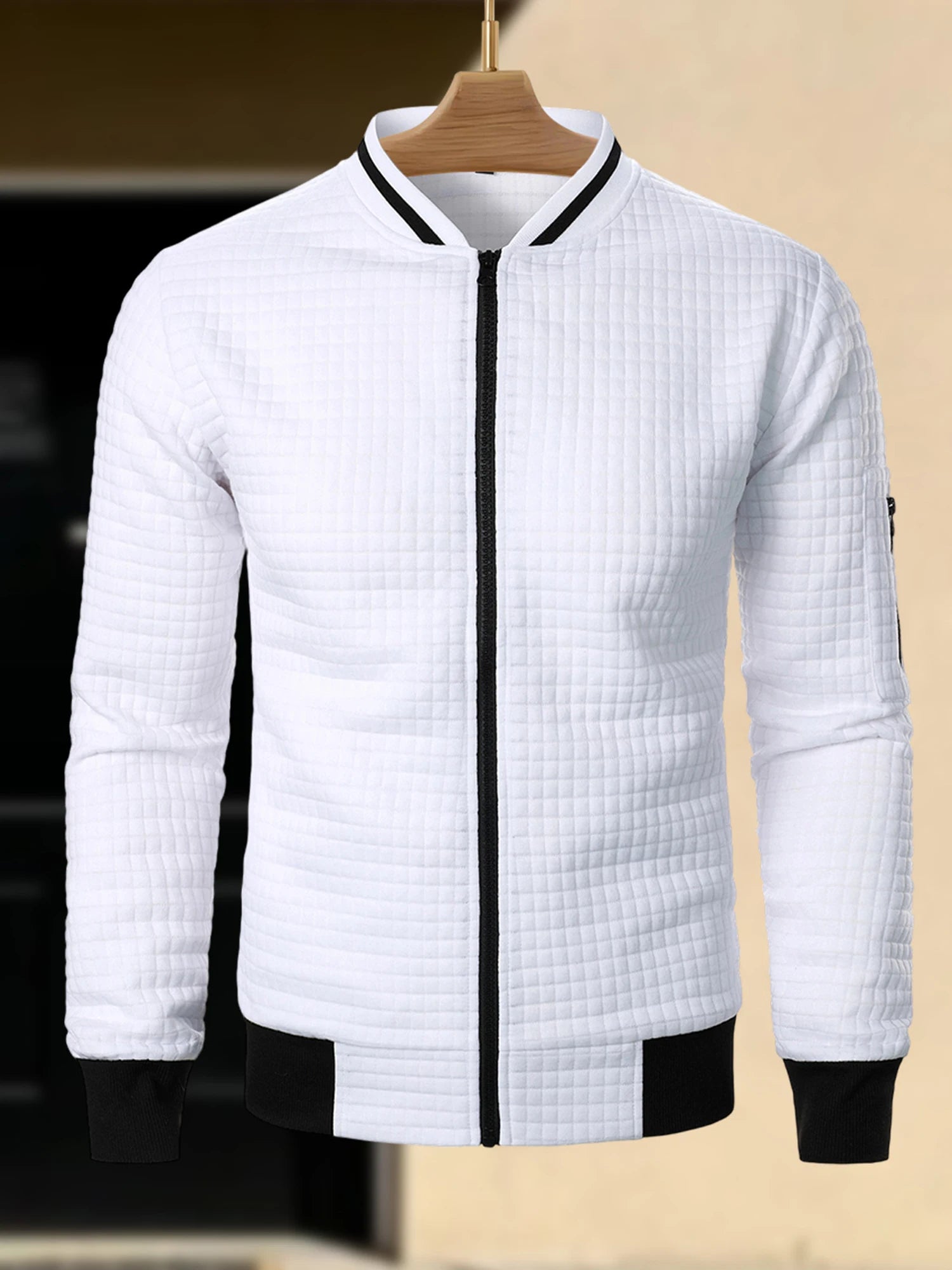 Men's Spring Fall Jacket Contrast Color Zipper Up Lightweight Long Sleeve Stand Collar CoatSize (cm)