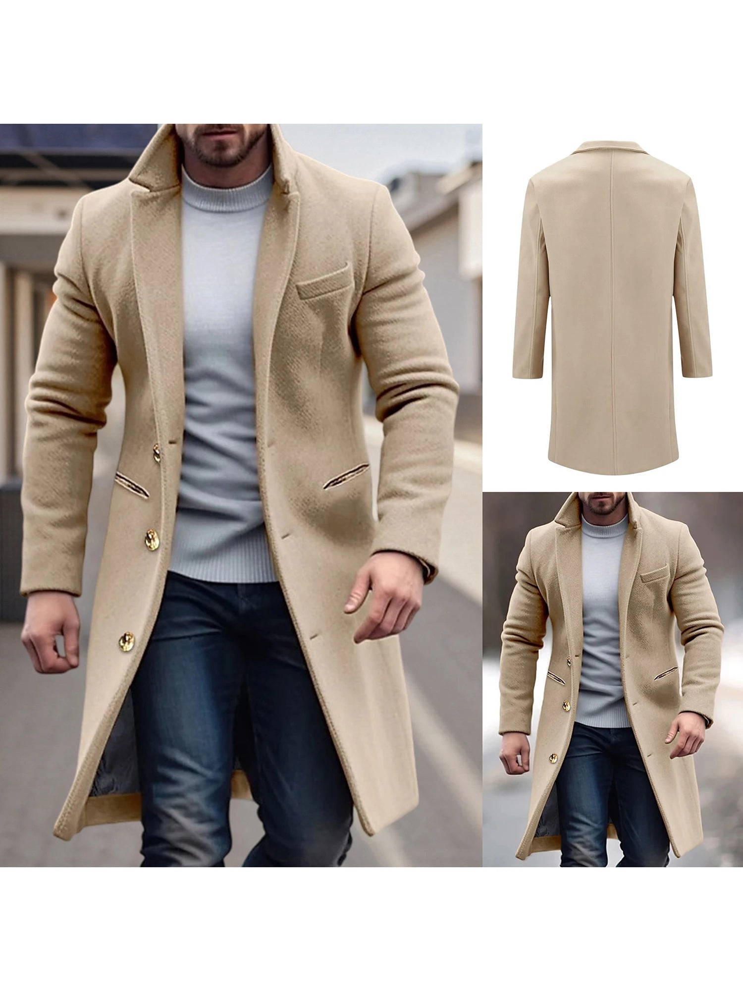 Men Single Breasted Pea Coat Casual Solid Color T Warm Long Sleeve Winter Cardigan for Streetwear OuterwearFeatures