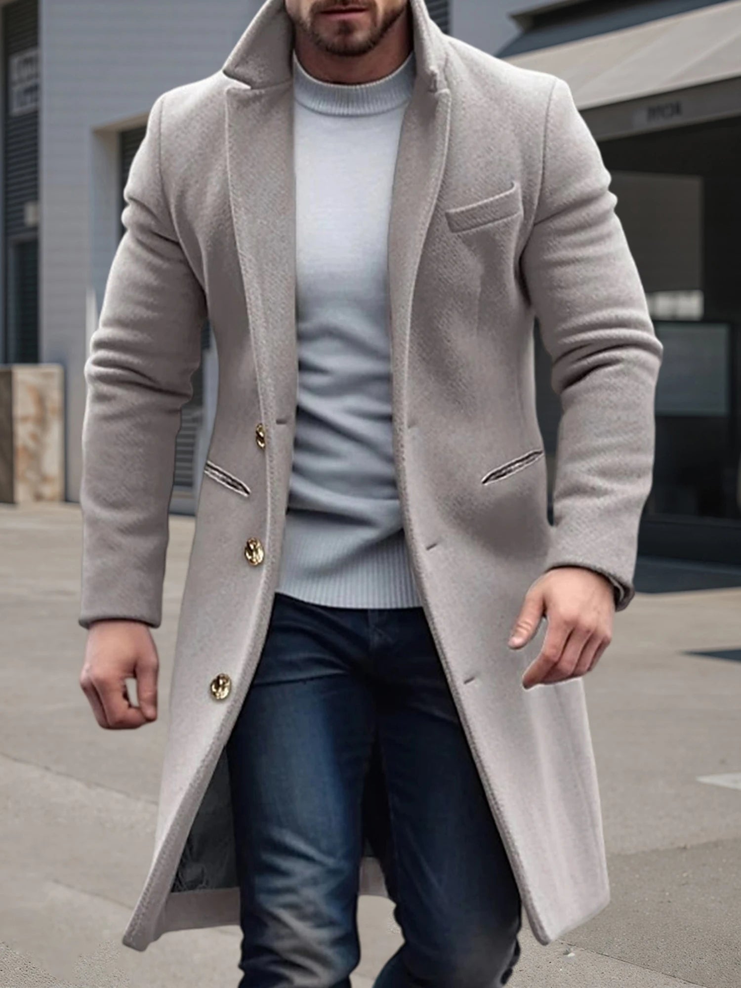 Men s Classic Wool Blend Pea Coat with Notched Lapel and Button Closure for Stylish Winter Outerwear and Streetwear Fashion