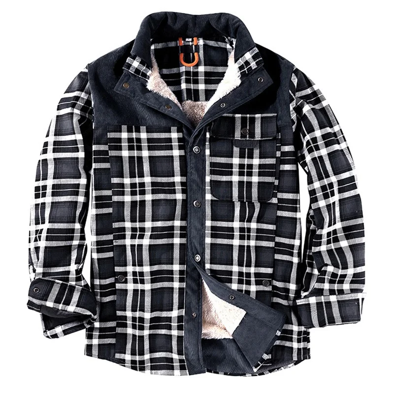 Mens Plaid Shirt Jacket Fleece Lined Lapel Neck Long Sleeve Button Down Winter Coat Warm OutwearSize (cm)