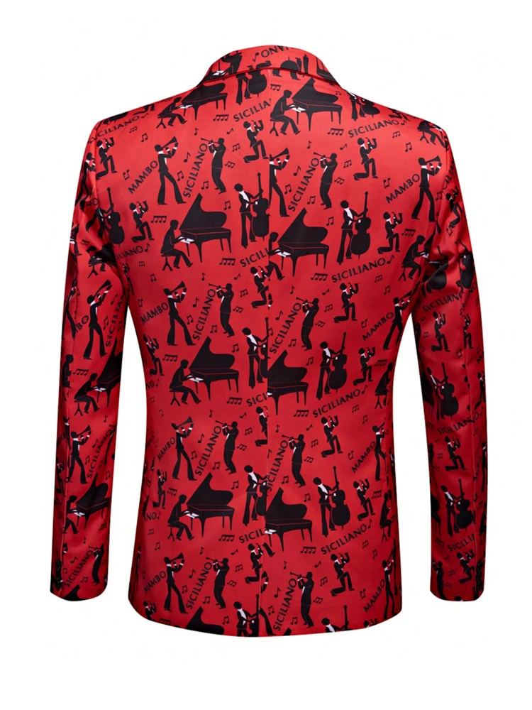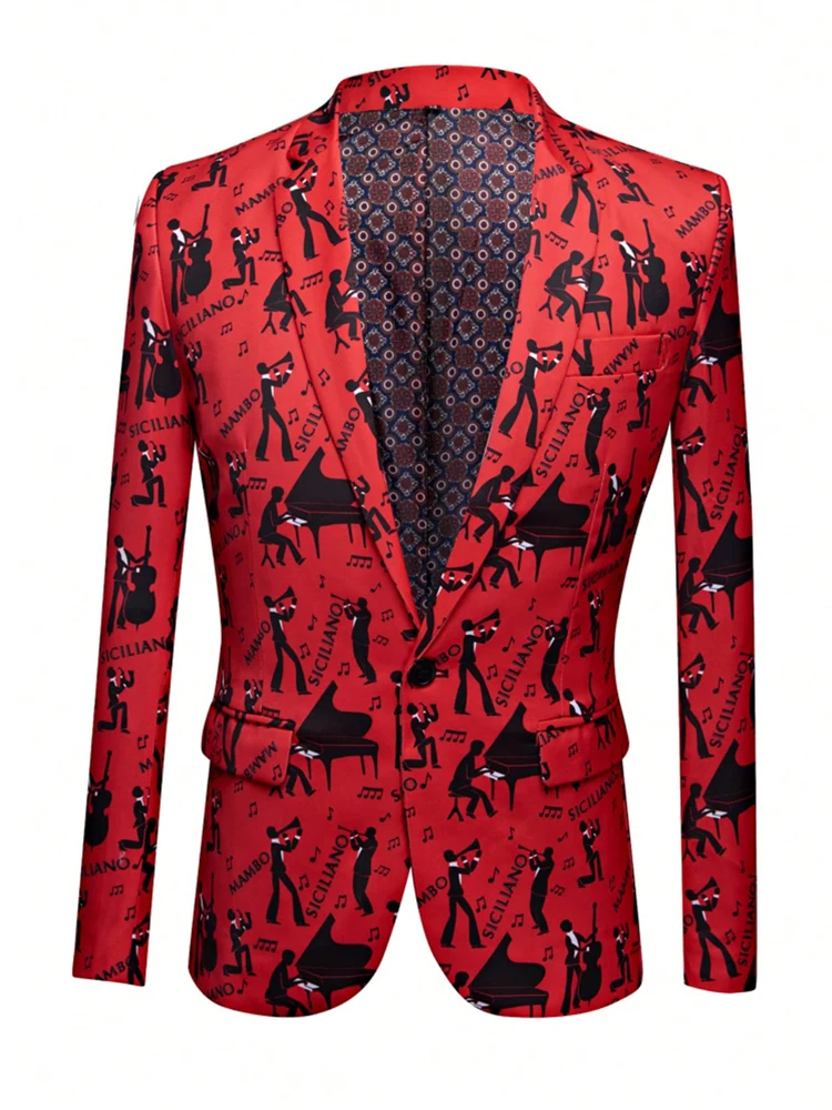 Mens Blazer Printed Suit Jacket 1 Button Slim Fit Floral Dinner Sport Coat Blazers