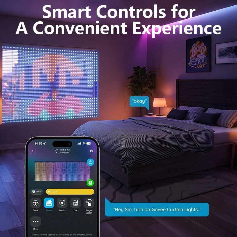 Over 108 Holiday Pattern Scene Modes: Changing the scene every day is cool! These lights go beyond just Christmas themes, featuring patterns for nearly every holiday you can imagine; From romantic display of beautiful hearts or vibrant patterns for festive cheer, It's like having a year-round decoration that you can change up as you please