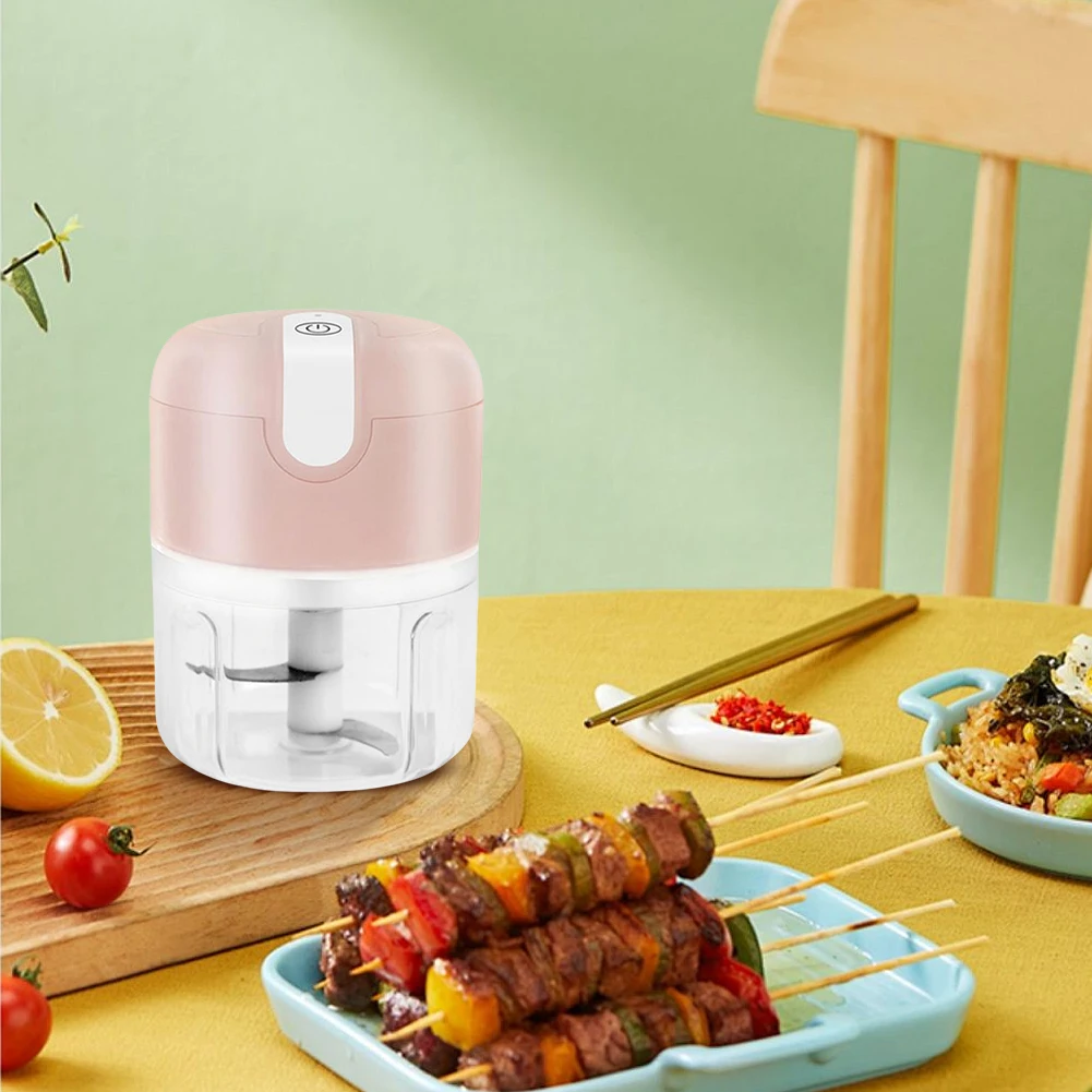Features: Specification: Origin: Mainland China Capacity: 250ml Material: PP+stainless steel Color (optional): white, blue, pink Capacity: 250ml Power: 37W Rated current: 8A Voltage: USB 3.7V (built-in 1200 mAh lithium battery) Product size: 130.00x83.00x83.00mm/5.12x3.27x3.27inch Weight: 250g Applicable: chili, carrot, minced meat, garlic, vegetables, ginger, seasoning...
