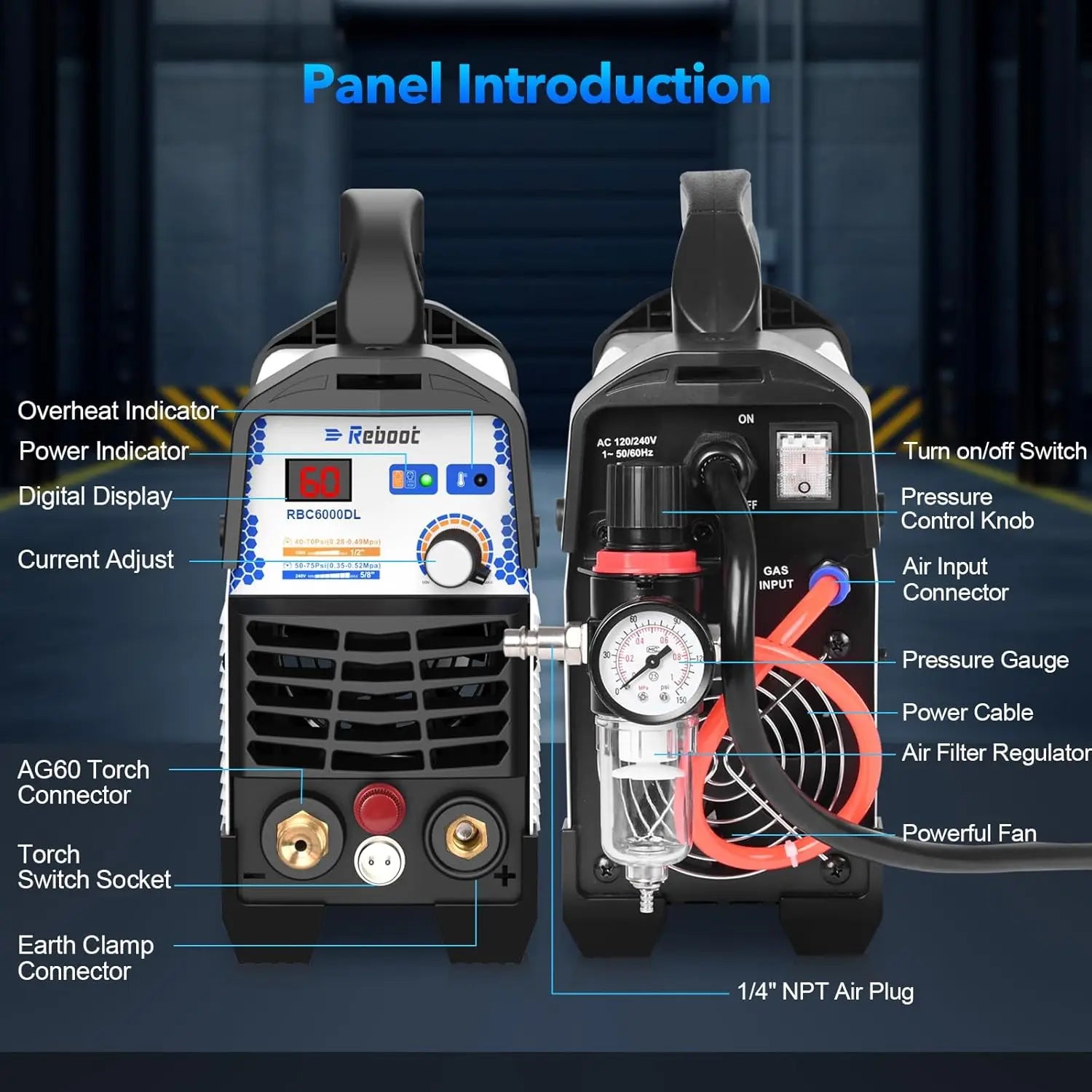 TITLE: Reboot Plasma Cutter Non Touch 50 Amp CUT60DL 1/2" Clean Cut Air Plasma Pilot Arc 110/220V High Frequency Inverter Machine 3/5'' Max Cutting for Copper Alloy Mild Steel Aluminum