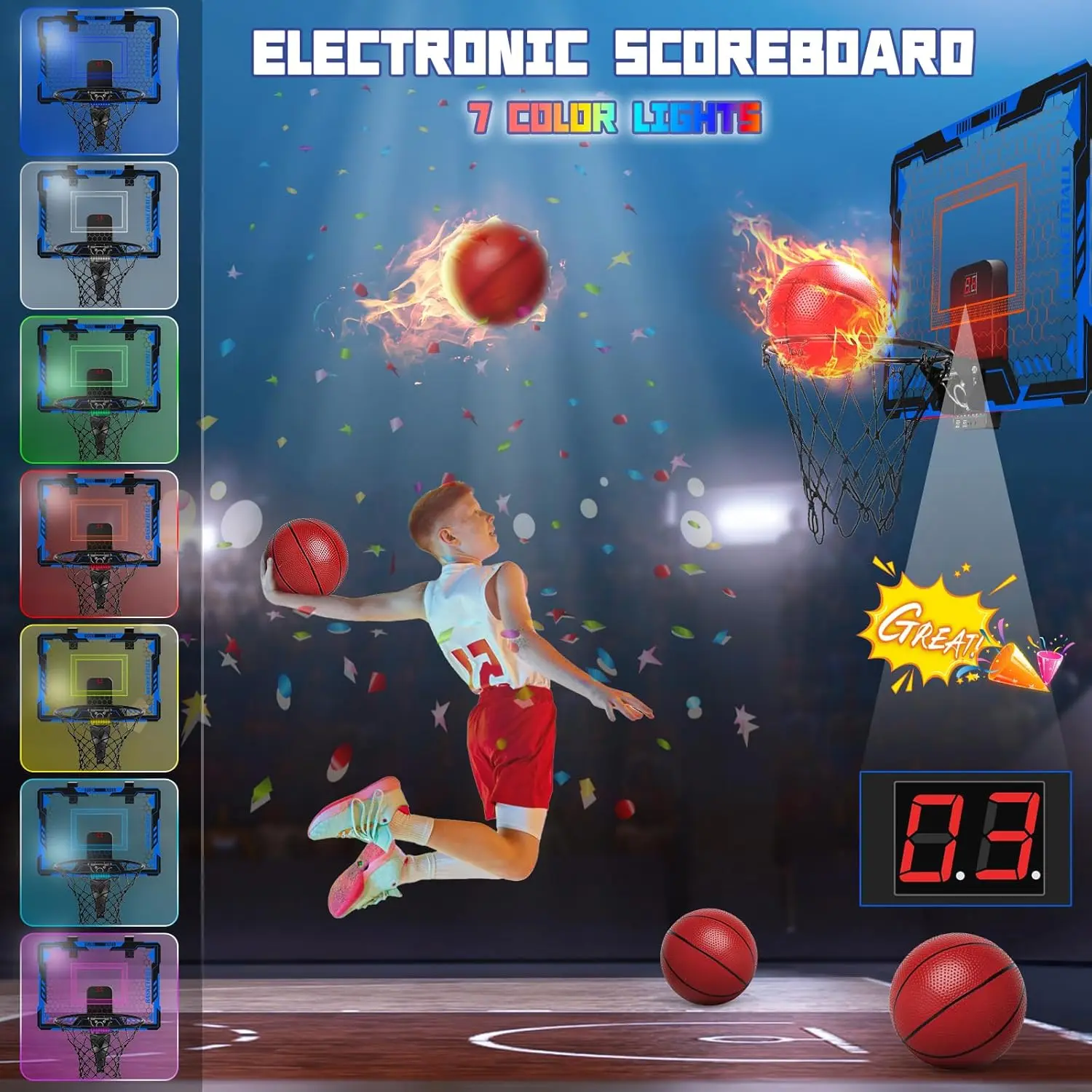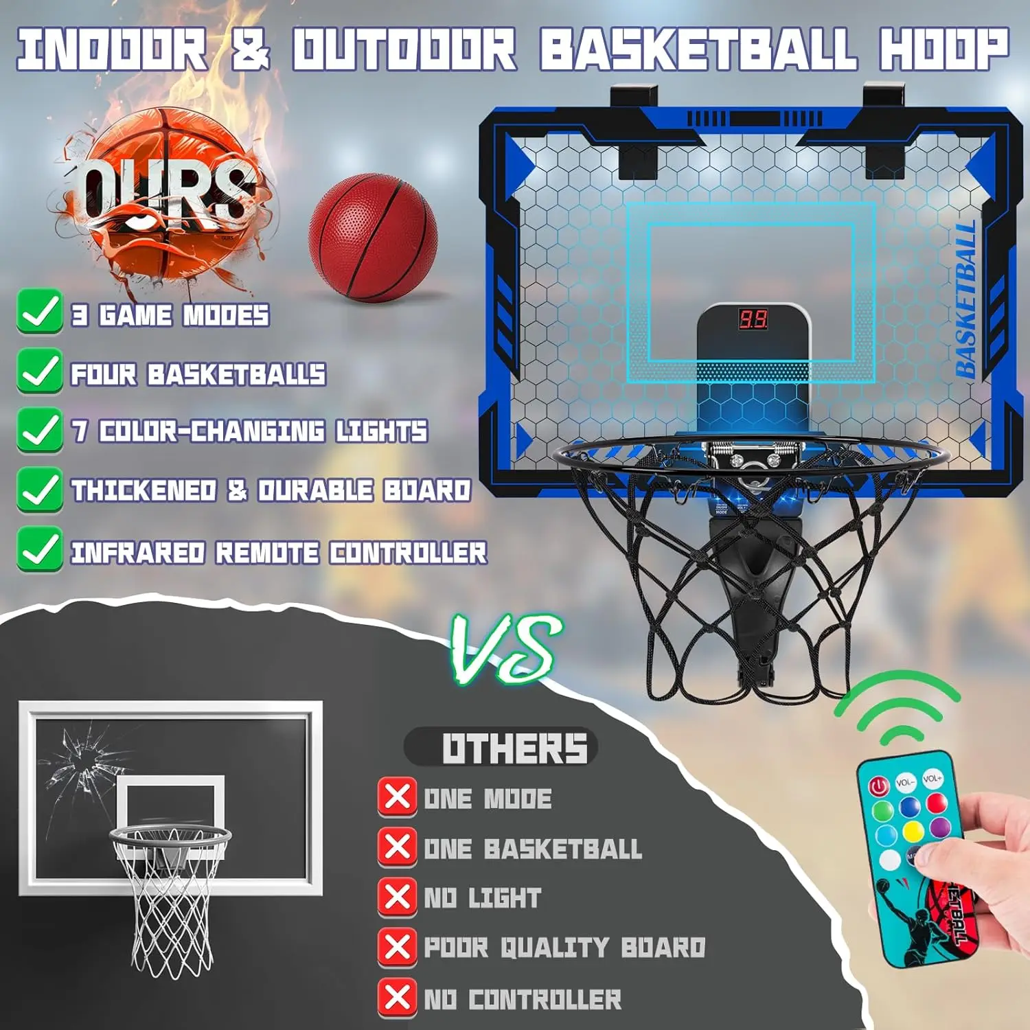 Remote Control LED Basketball Hoop with Scoreboard, Balls, Pump & Bag - Indoor Sport Toy for Kids