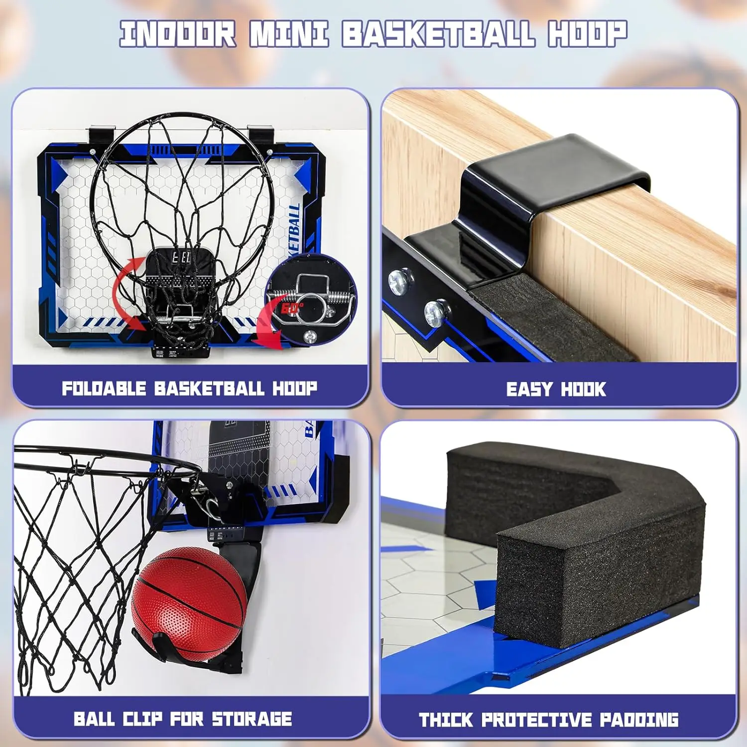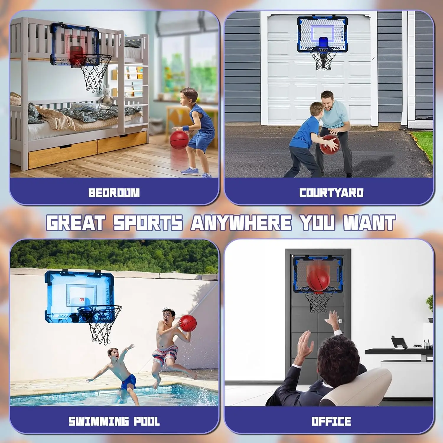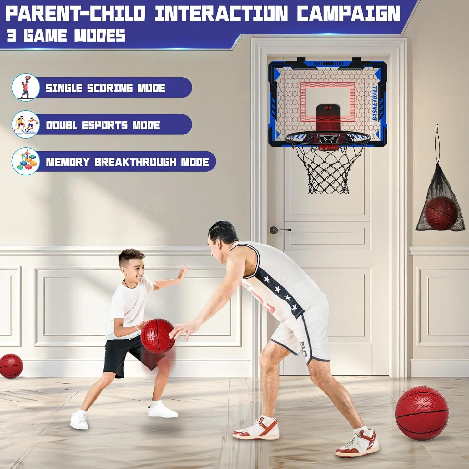 Elevate indoor playtime with our innovative Remote Control Basketball Hoop! This all-in-one set is designed to provide endless fun and skill-building for children aged 3 and up. Key features include: 1. **Remote Control Operation**: Easily adjust the hoop height from a distance using the included remote, allowing for customizable play without manual adjustments. Perfect for growing kids or different skill levels. 2. **LED Light and Scoreboard**: The built-in LED light illuminates the hoop for exciting nighttime games, while the digital scoreboard keeps track of points in real-time, adding a competitive edge to play. 3. **Complete Accessories Set**: Comes with 4 durable basketballs suitable for indoor use, an air pump to keep them inflated, and a convenient storage bag for easy organization and portability. 4. **Over-the-Door Mounting**: Designed to fit securely over most standard doors without tools or damage, making setup quick and hassle-free. Ideal for bedrooms, playrooms, or any indoor space. 5. **Educational Benefits**: Encourages physical activity, hand-eye coordination, and teamwork through interactive play. A great gift option that promotes healthy habits and family bonding. 6. **Durable Construction**: Made from high-quality materials to withstand active use, ensuring long-lasting enjoyment and safety during play sessions. This versatile toy is perfect as a birthday present or holiday gift for boys and girls who love sports-themed activities.