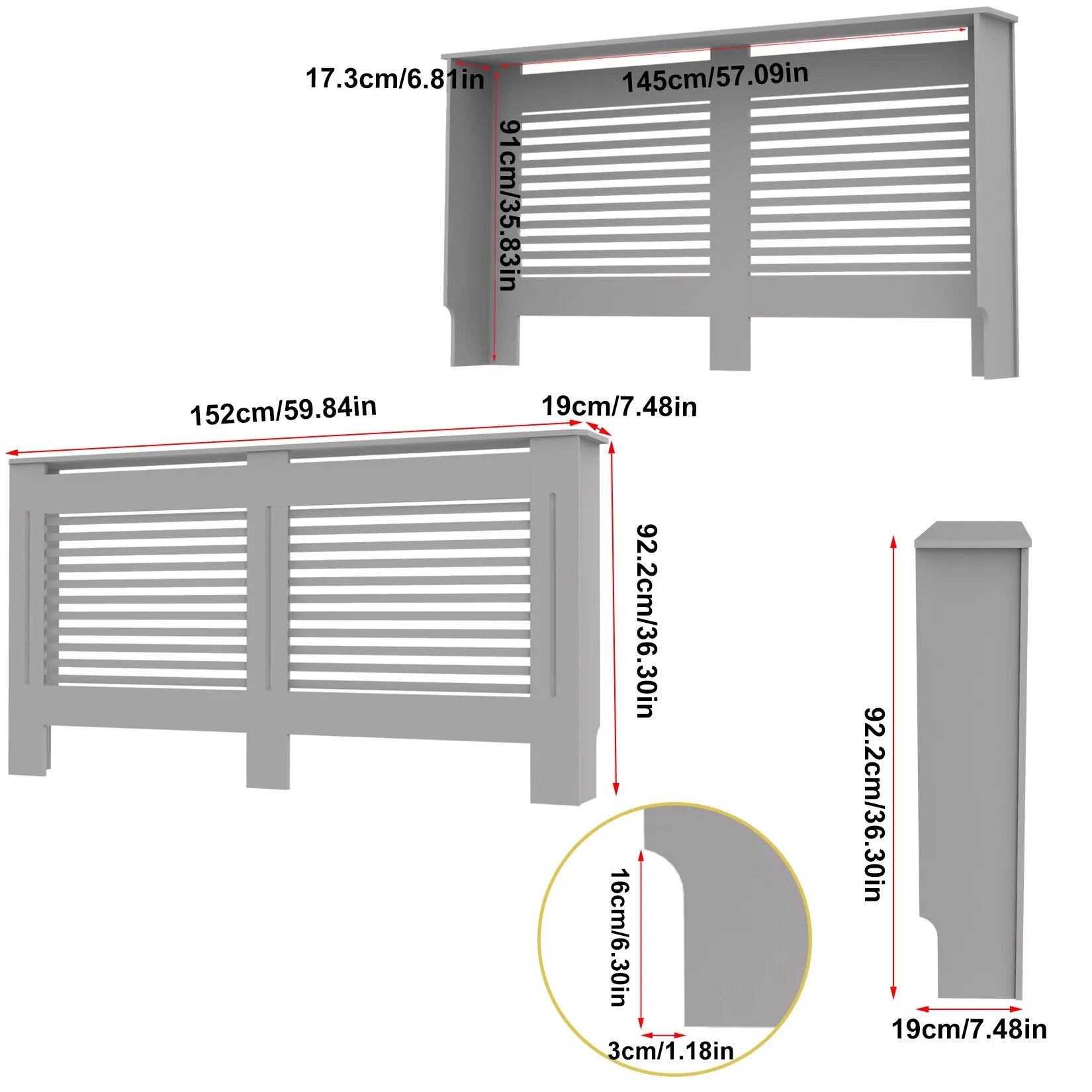 S M L XL Extra Tall 92CM Radiator Cover MDF Cabinet Grill Shelf Fence Panel Barrier