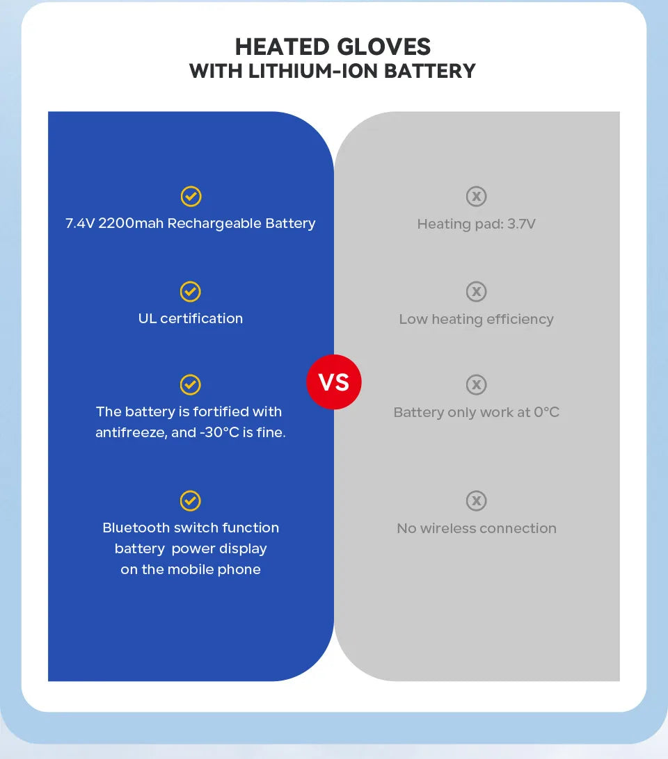 3.Put on gloves, long press the power button for 3 seconds for the first time, and then short press the power button to adjust the temperature in turn. The light changes from red advanced to white intermediate, and finally to blue.
