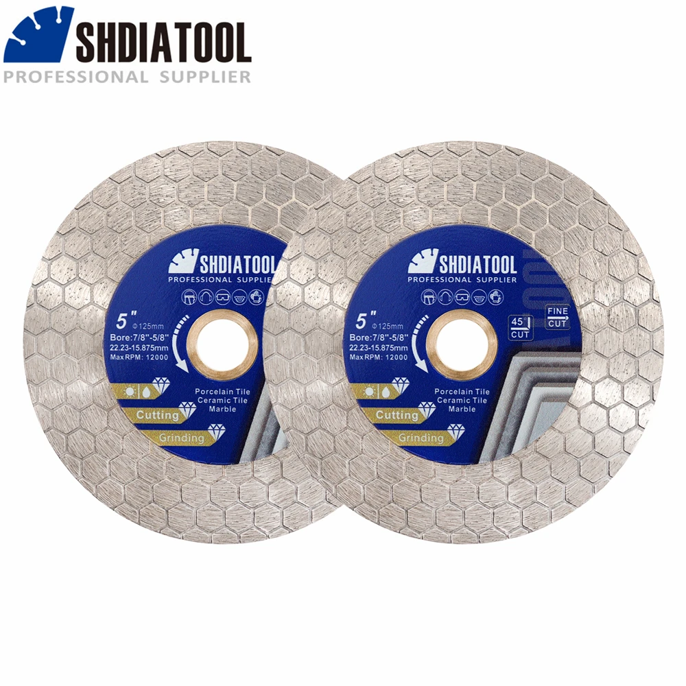 SHDIATOOL 2Pcs Dia125mm Double-sided Cutting Disc Diamond Saw Blade Grinding Wheel For Ceramic Tile Marble 5inches Cutter Plate