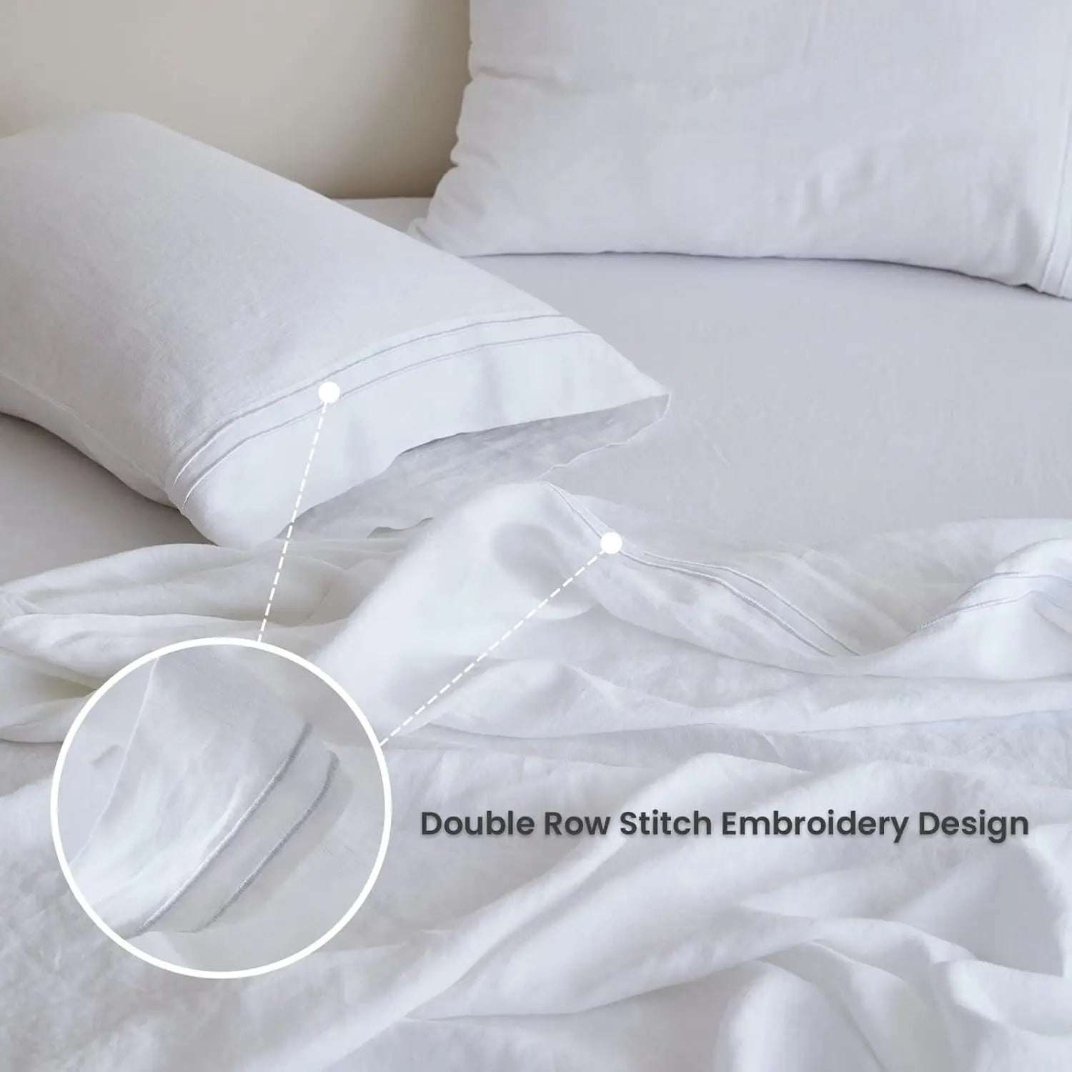 Simple&Opulence 3/4 Pcs 100% Bed Linen Sheet Set Embroidery Washed Natural French Flax Soft Breathable Comforter Sheets Sets