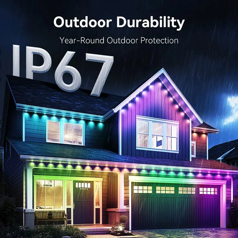 Smart Permanent Outdoor Lights For House Smart RGB+IC Eave Lights with Remote APP Control IP67 Waterproof Smart LED Eaves Lights