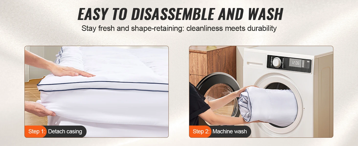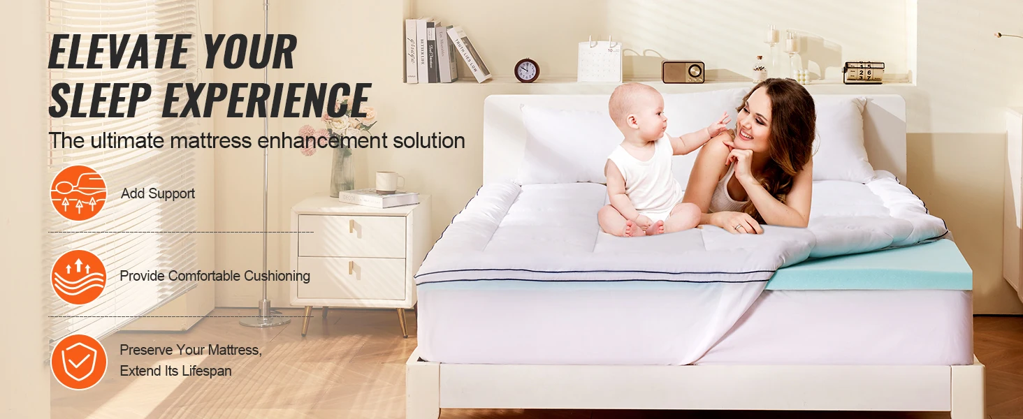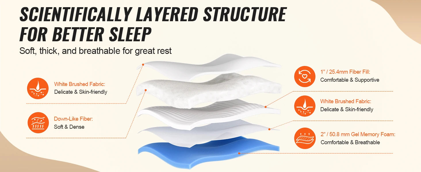Cooling Gel Technology Material: The mattress topper has cooling gel to manage heat and keep you cool and dry at night. Enhanced Sleep Comfort: Designed to fit your body curves, it eases pressure and supports the spine for a great sleep. Simple to Wash & Care For: The detachable and machine-washable topper is easy to clean and maintains shape after washing. Practical Storage & Clutter-free: With a detachable pocket, it stores items and keeps the bed tidy. The elastic strap ensures a snug fit. Luxurious Comfort Experience: The topper has high-density foam and 3"/76.2 mm thickness for the right support and a plush feel.