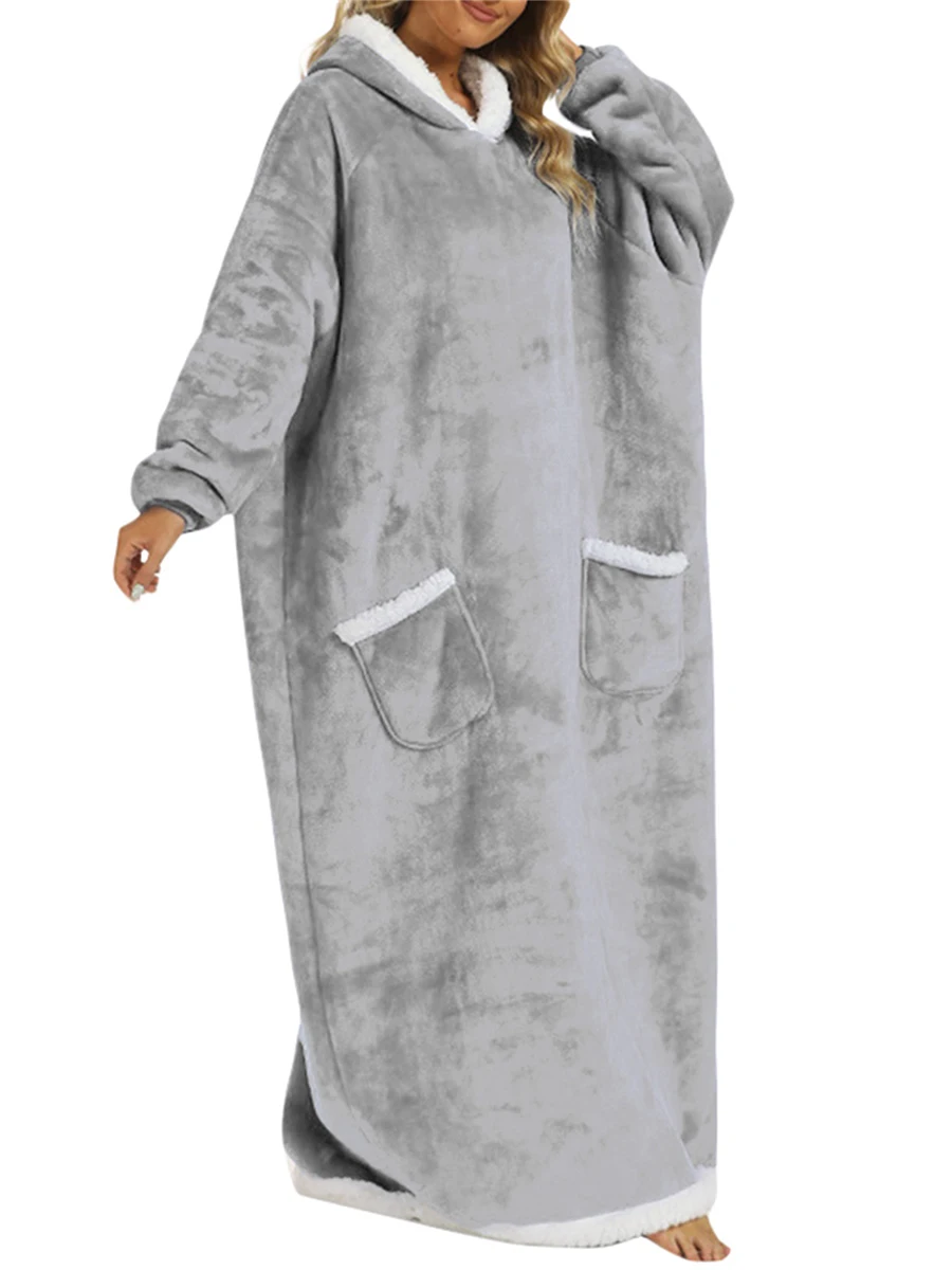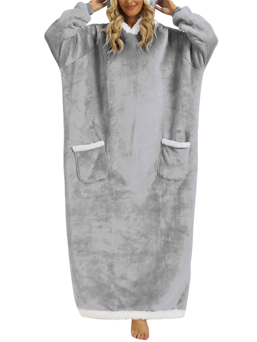 Wearable Blanket Hoodie Long Sleeve Hooded Blanket Oversized Loungewear with Pockets