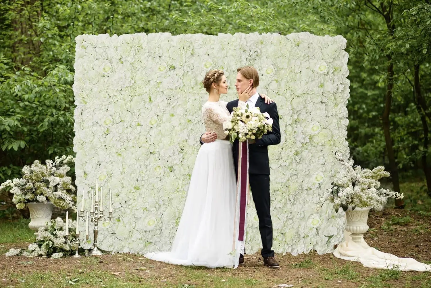 White Floral Wall Backdrop 24 Packs 15x15 Inches 3D Artificial Floral Wall Panels for Wedding Anniversary Party Decorations