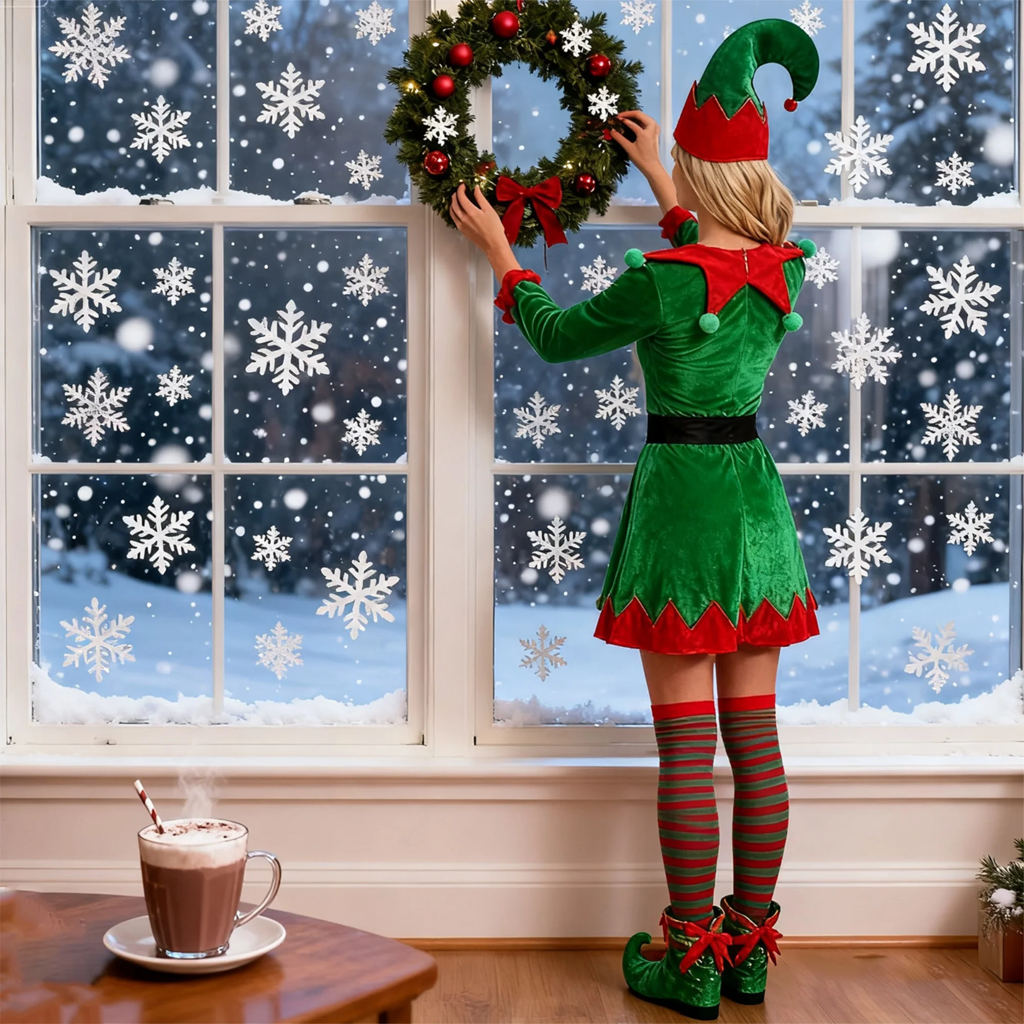 Women Christmas Cosplay Costume, Green Elf Dress with Hat & Belt & Boots & Stockings Fairy Costume for Themed PartySize (cm):
